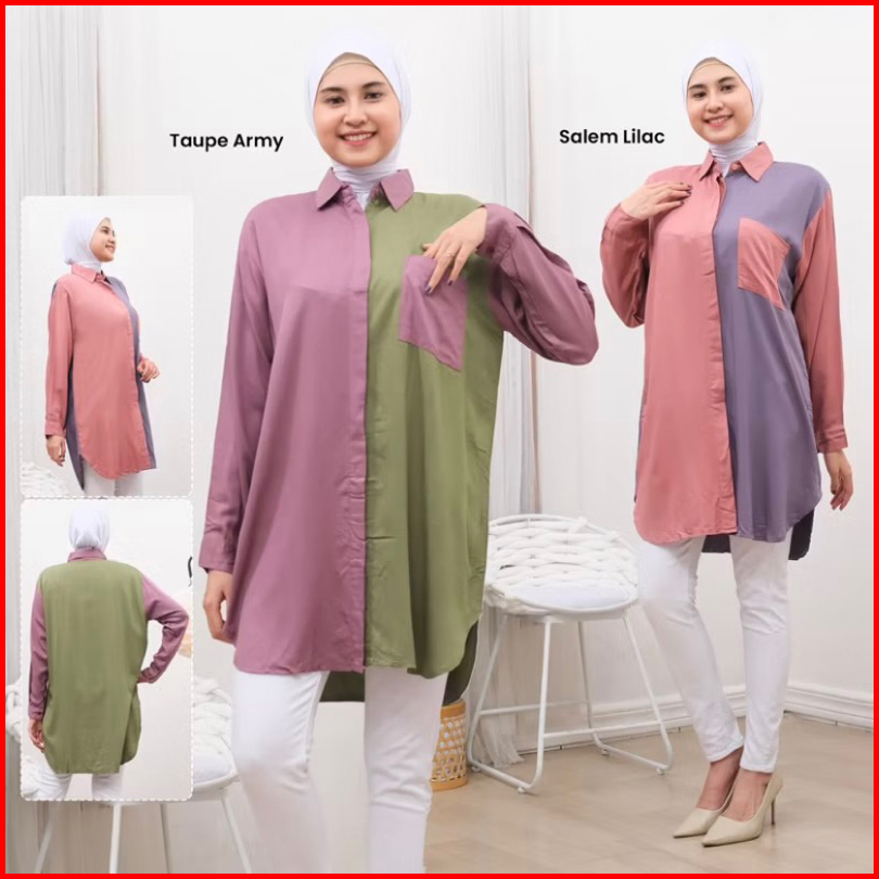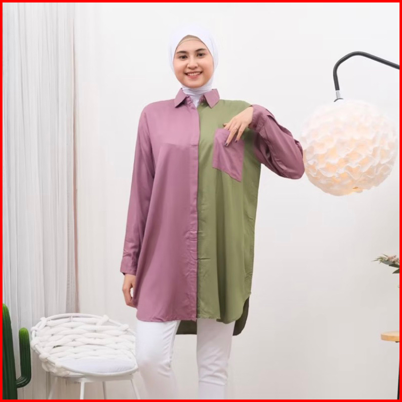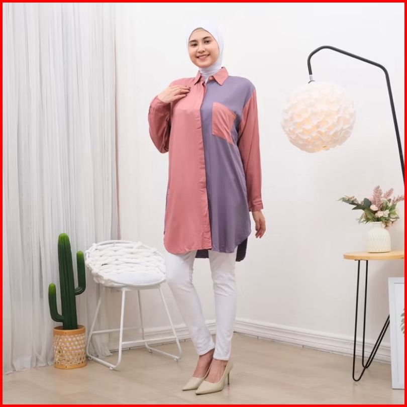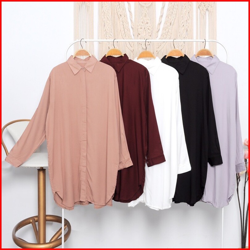 Newladiessa Alena Tunik Rayon Twill Kemeja Panjang Wanita Tunik Polos Basic Top