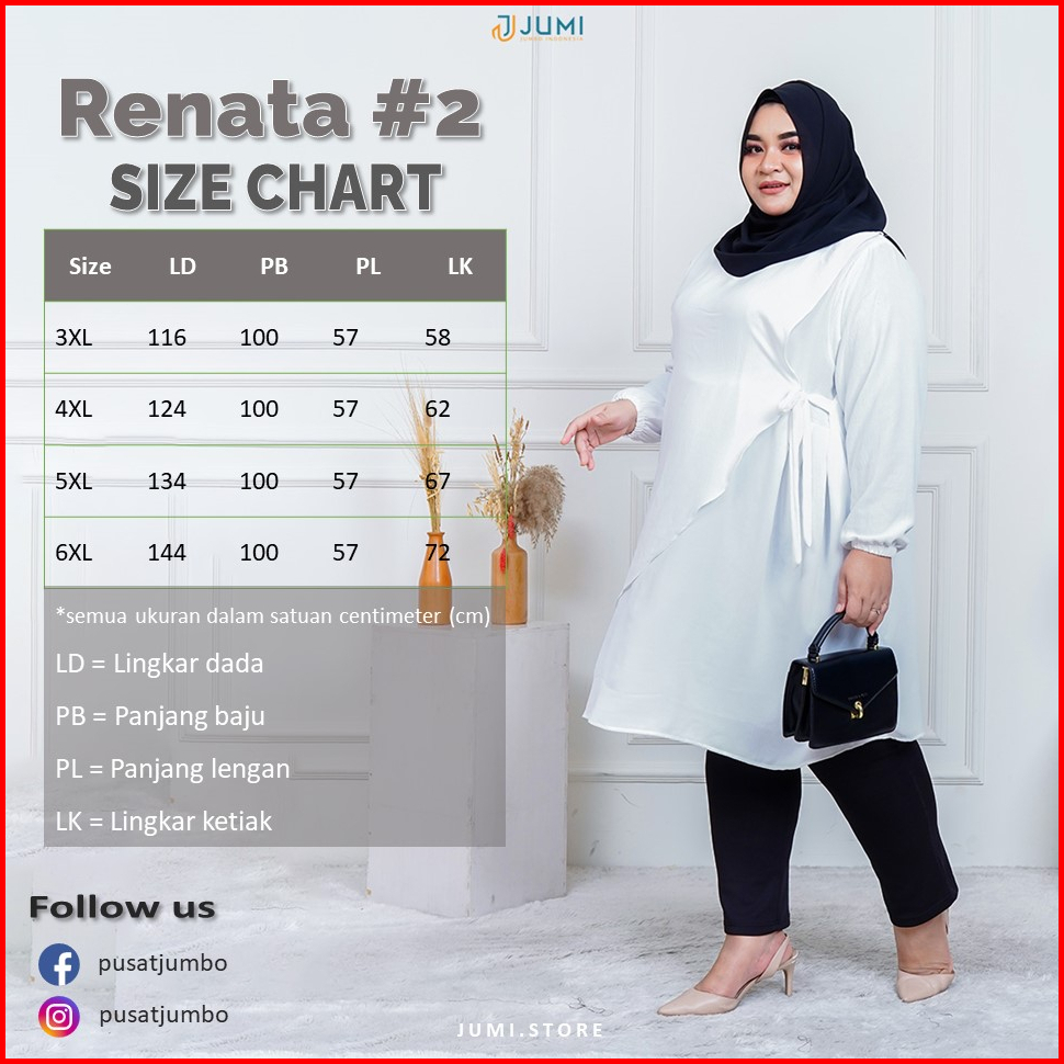 Tunik Jumbo Polos Premium Ld 116 124 134 144 Cm Baju Kuliah Kerja Renata Tunik