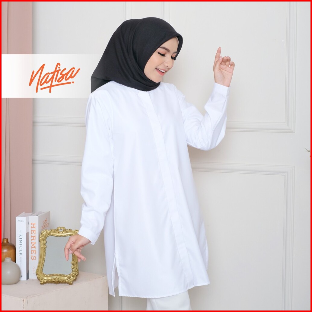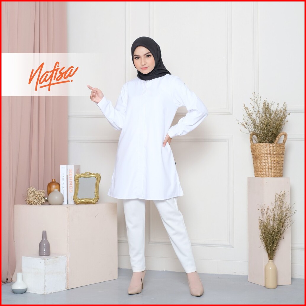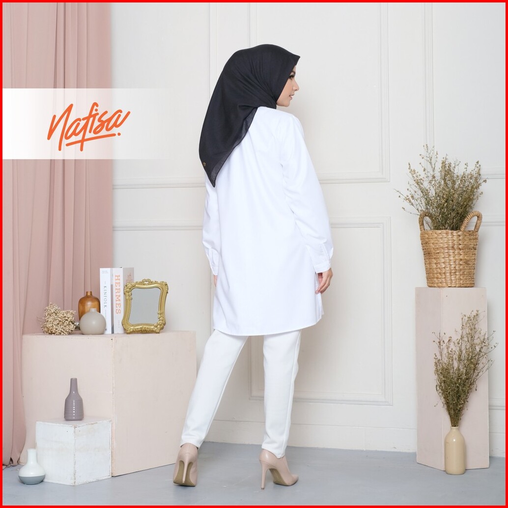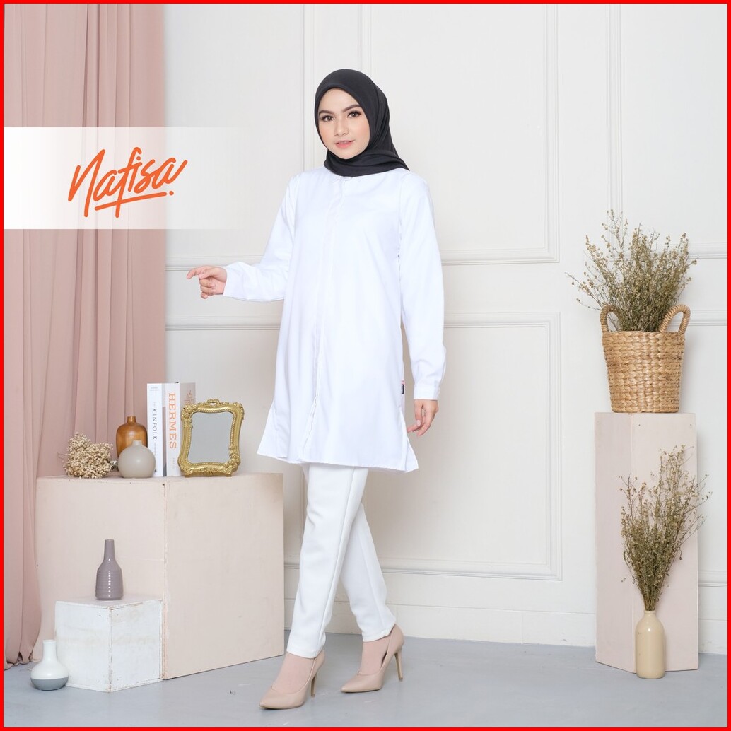 Nafisa Tunik Fleksibel Day - Kemeja Tunik Day To Day Toyobo Size Lengkap - White
