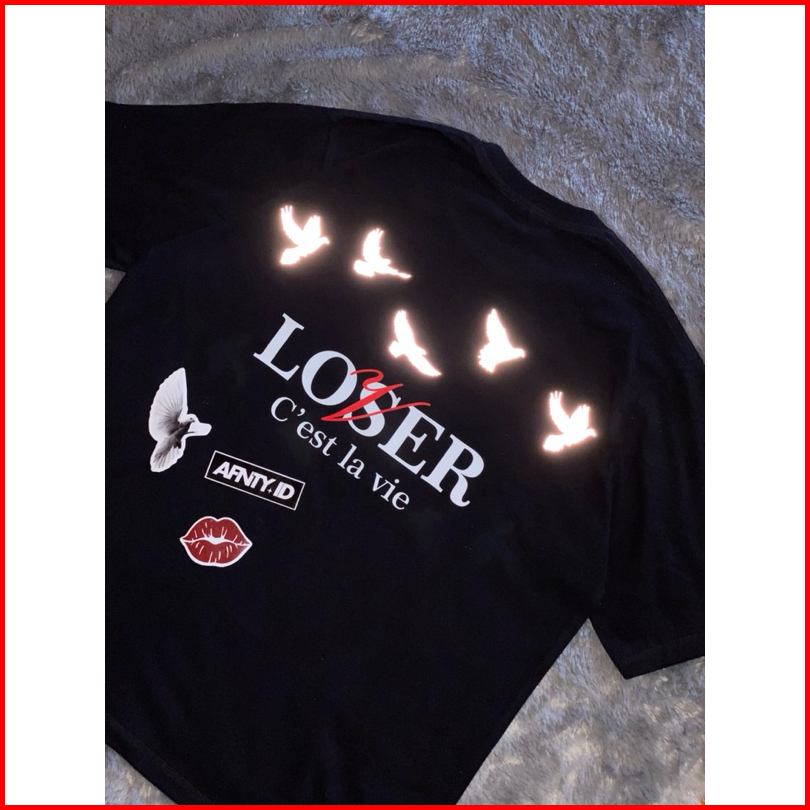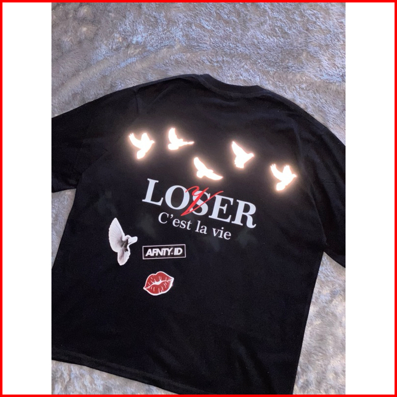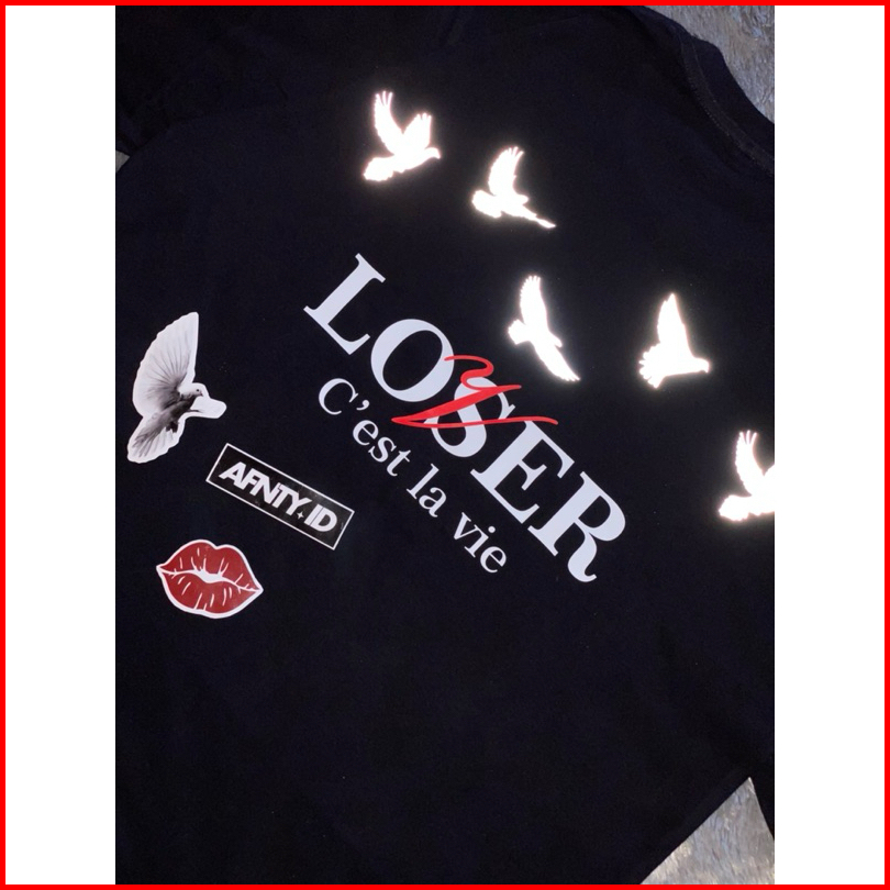 T-shirt Lover Loser Menyala Afnty.id Unisex Pria Dan Wanita Cotton Combed 20s Tebal Sablon Reflektif Style Black Distro