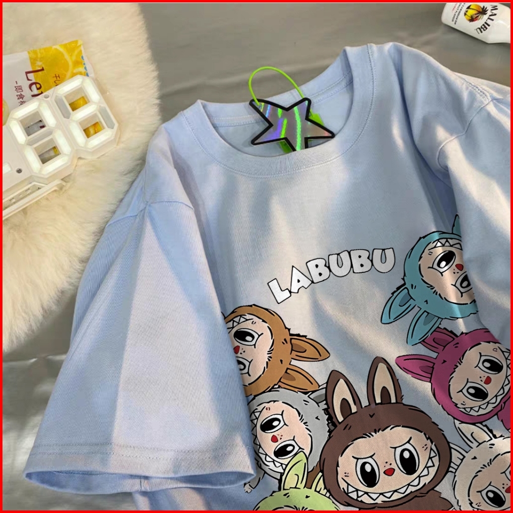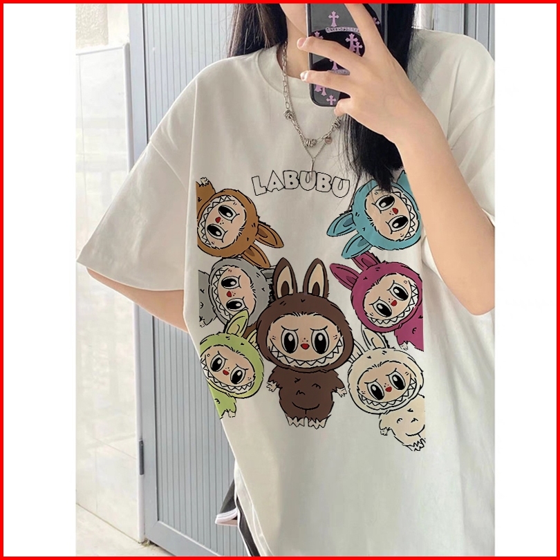 Baju Labubu Fashion Kaos Wanita Korean Style Lengan Pendek Oversize Atasan Kaos Wanita Kekinian 100 Cotton