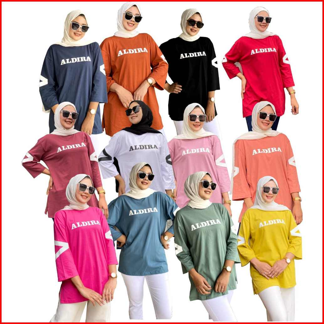 Aldira Kaos Oversize Wanita Terbaru2023 Jumbo Lengan 7 8 Kaos Wanita Atasan Wanita