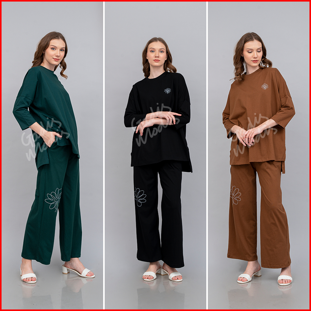 Leia Oneset Setelan Celana Setelan Rok Wanita Set Wanita Panjang - Gadis Modis