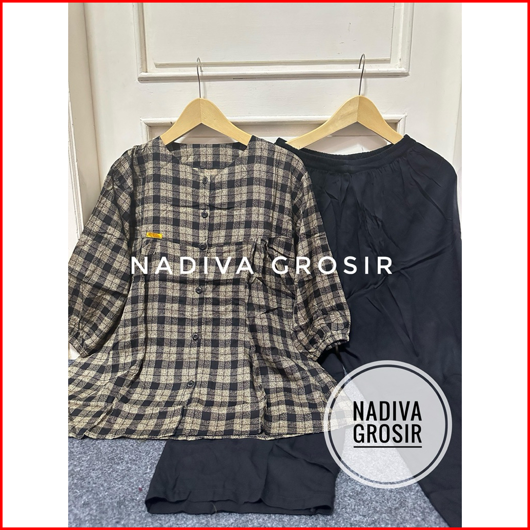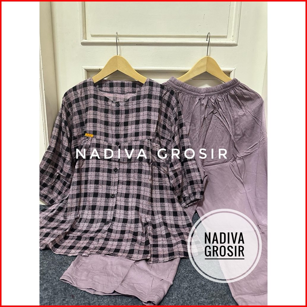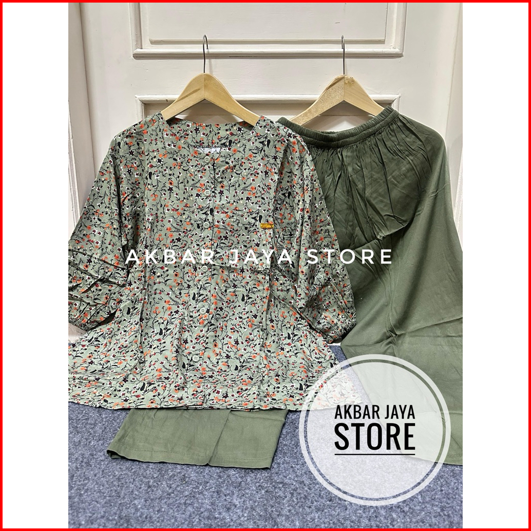 Terbaru 2025 One Set Setelan Wanita Model Leher Oblong Kekinian Jumbo Bahan Rayon Twill Premium