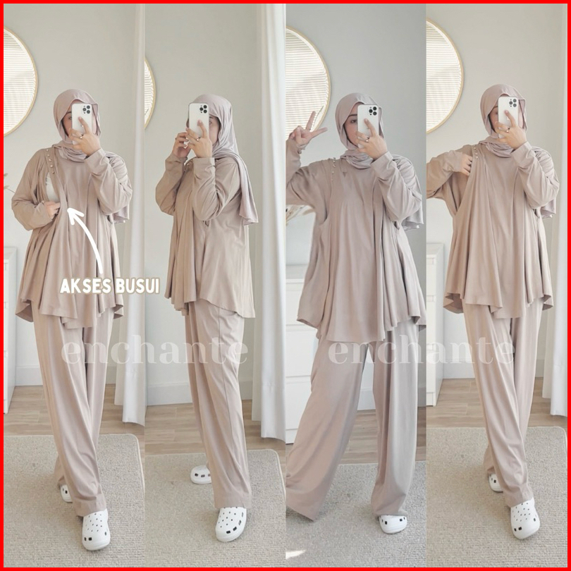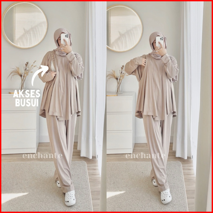 Chia Busui One Set Oversize Kaos Spandek Rayon Setelan