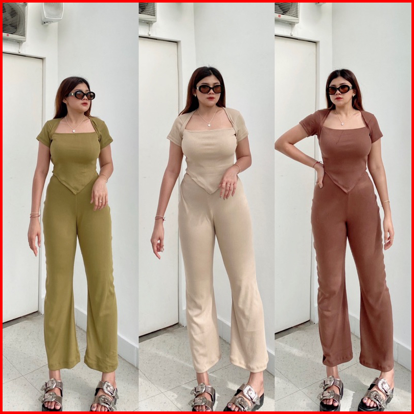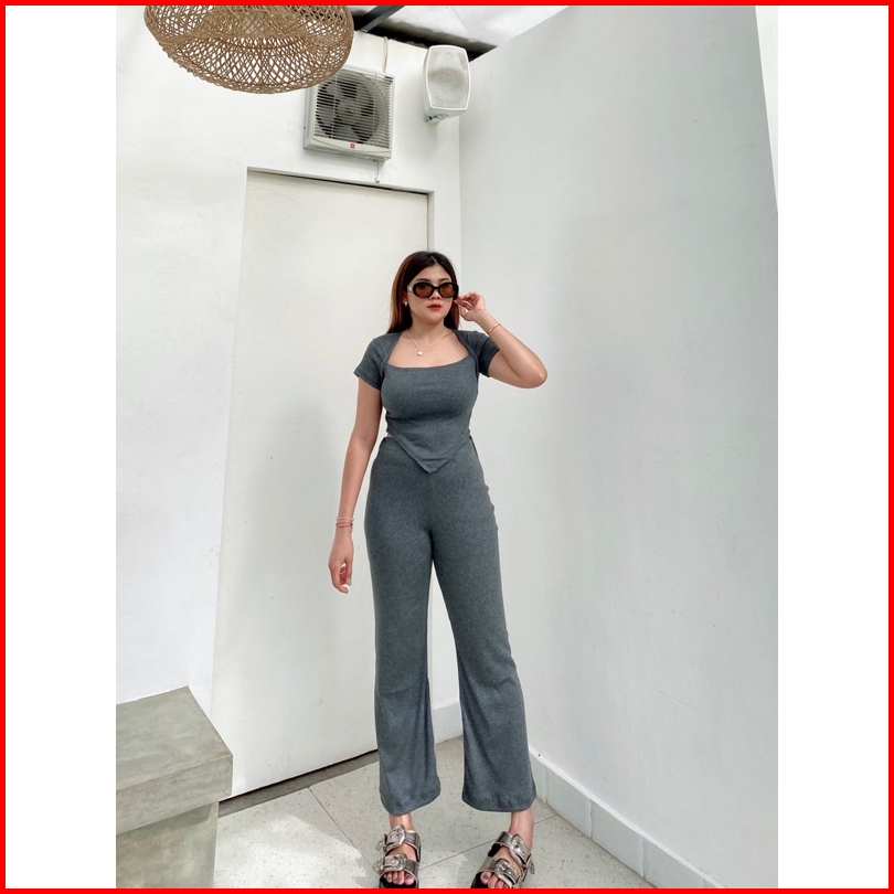 Hoki - Jessy Chic Knit Set Korean Style Ribbed Cullote