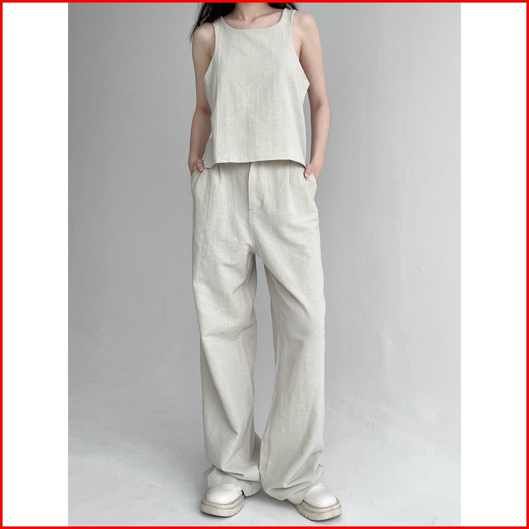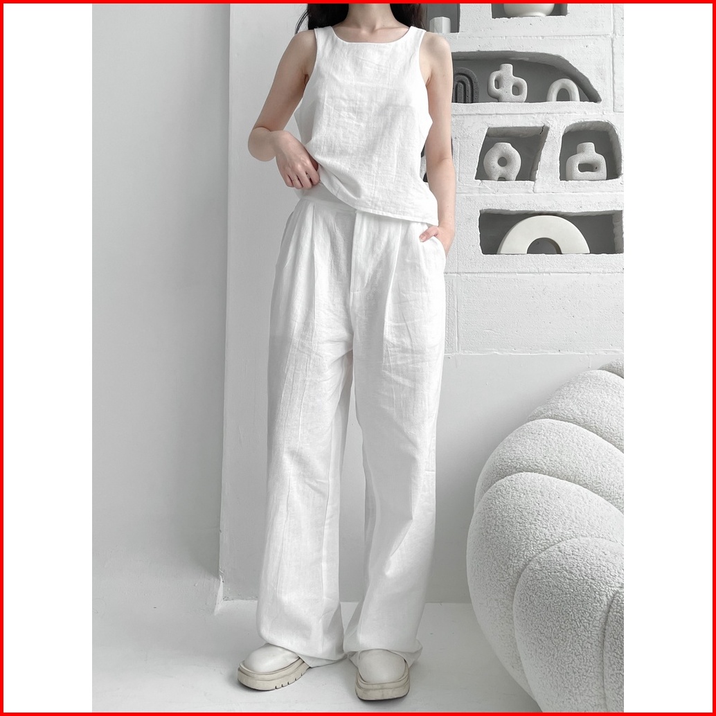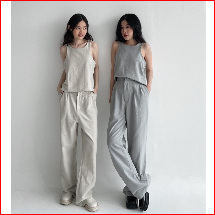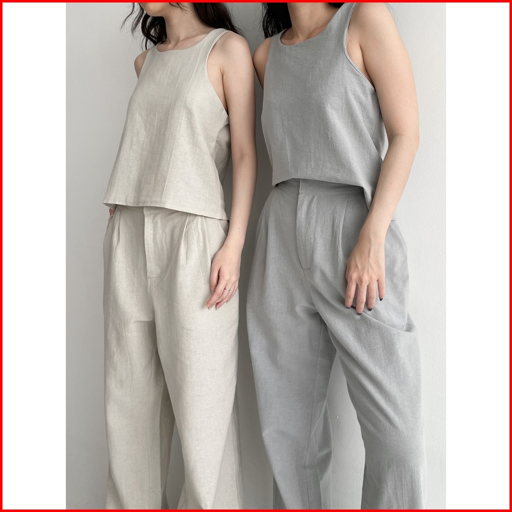 Days Monza Set Top Pants Linen Casual Set Tank Top Celana Setelan Wanita Set Wanita Linen Tank Top Linen Pants Kaos Wani