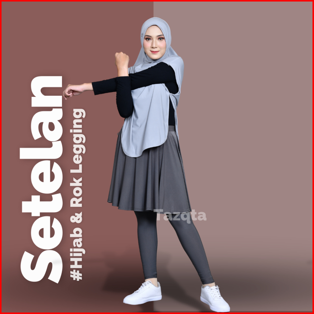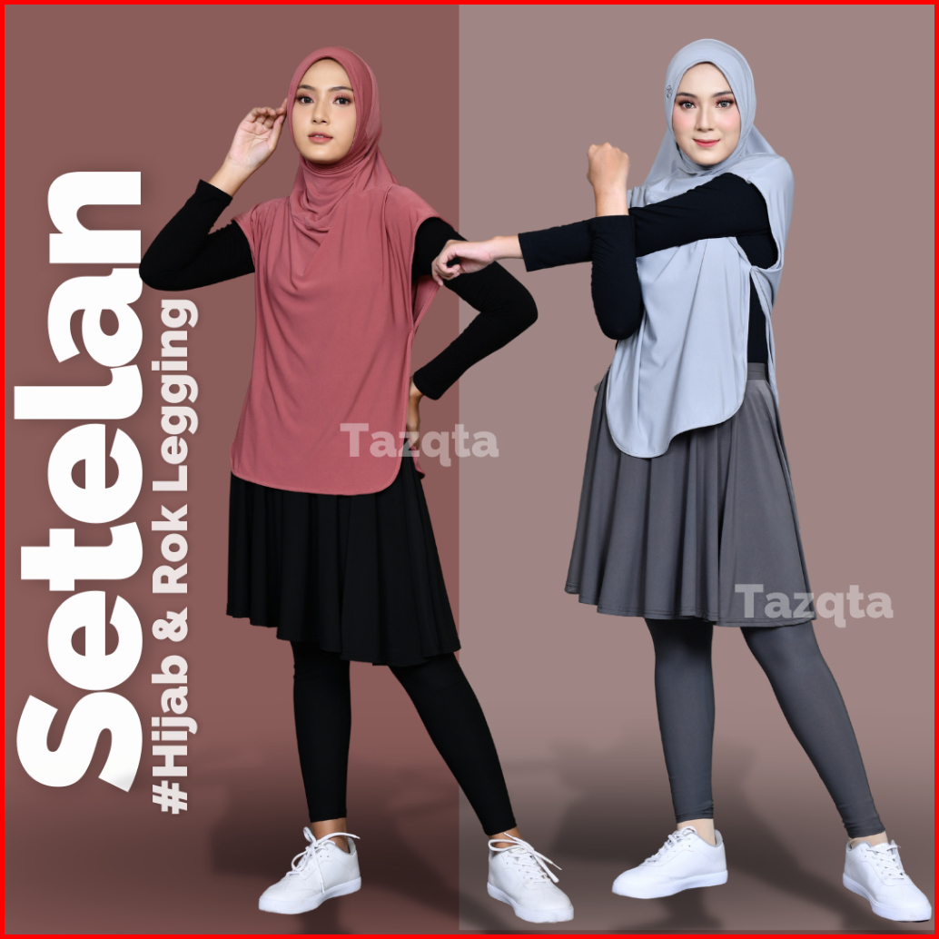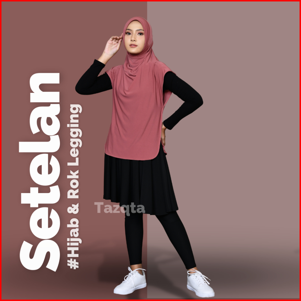 Setelan Sporty Jilbab Rompi Dan Legging Rok Olahraga Wanita