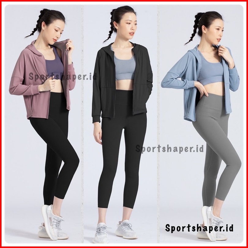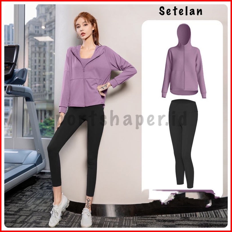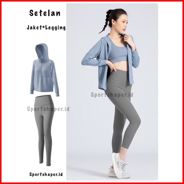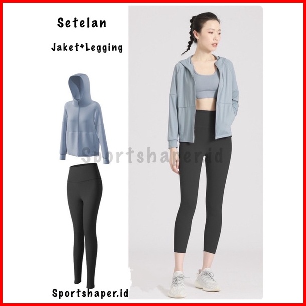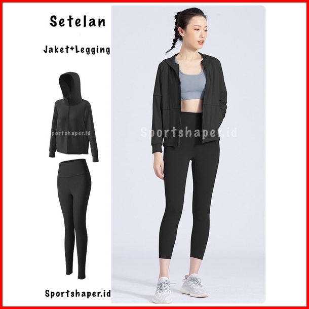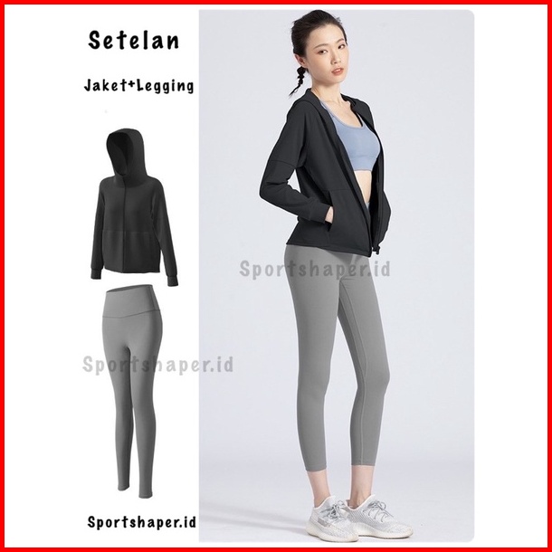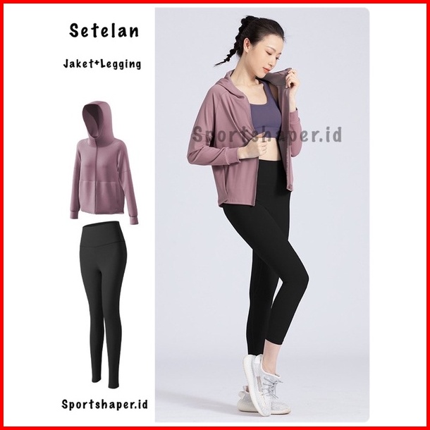 Set Jacket Hoodie Celana Legging Olahraga Gym Fitness Yoga Mtwtp-mt