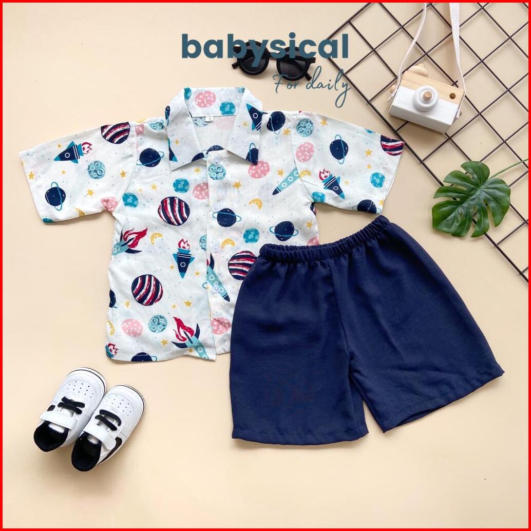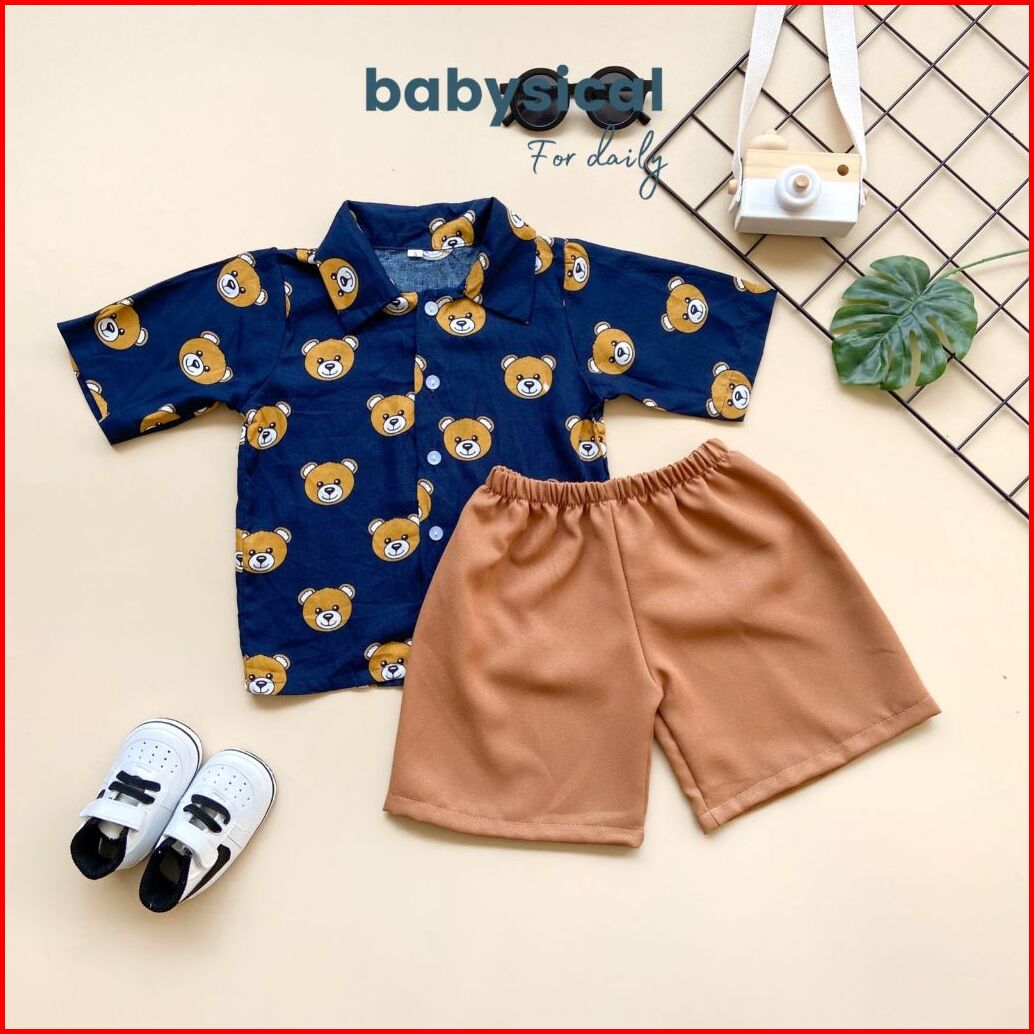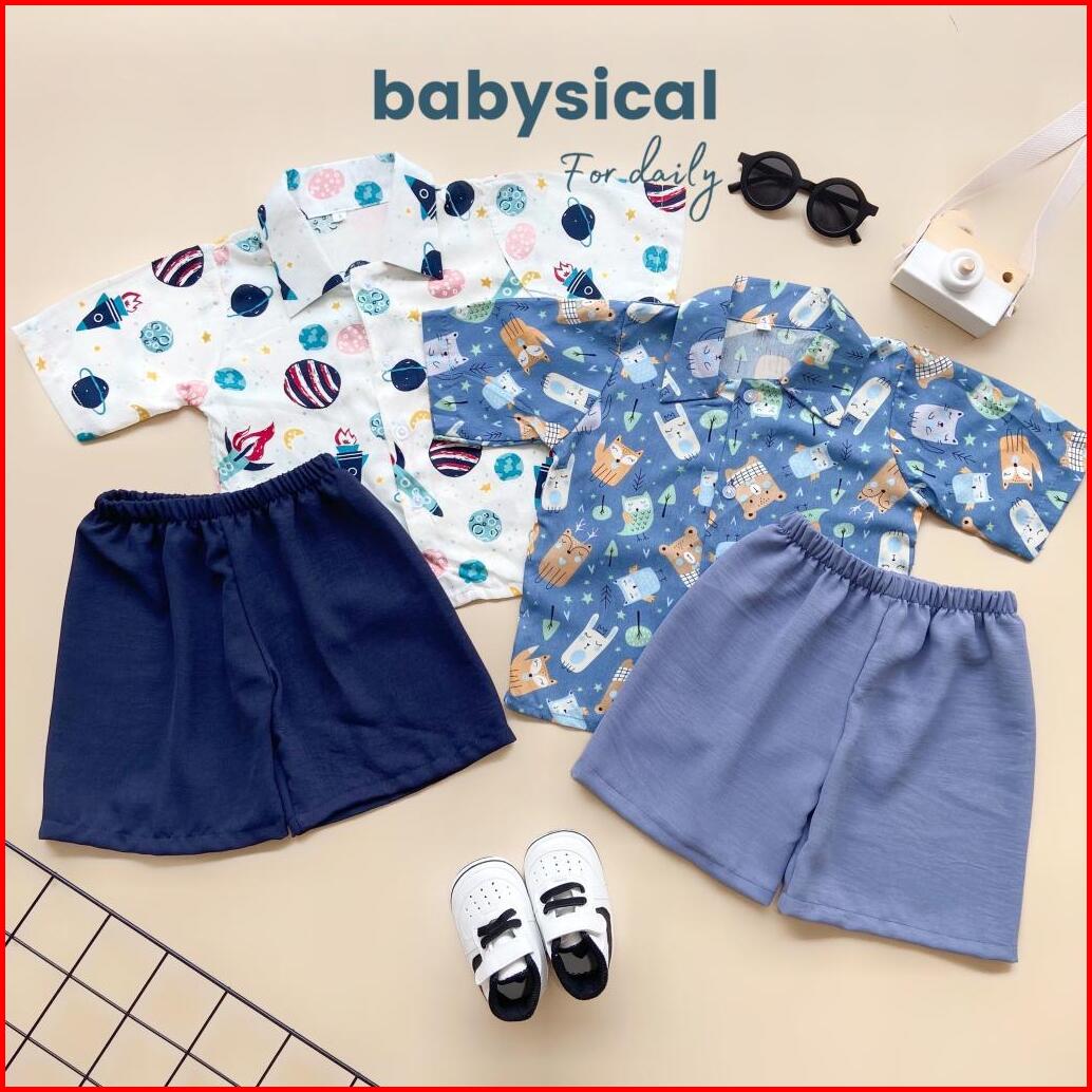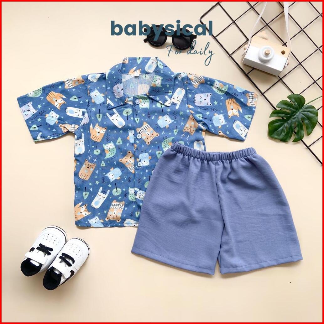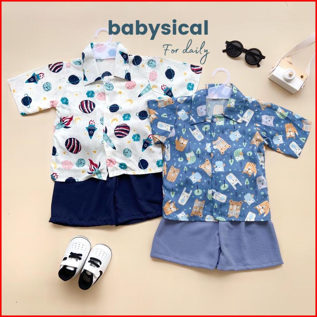 Babysical 1-6 Tahun Neil Set Setelan Baju Anak Kemeja Celana Pendek Stelan Baju Anak Balita