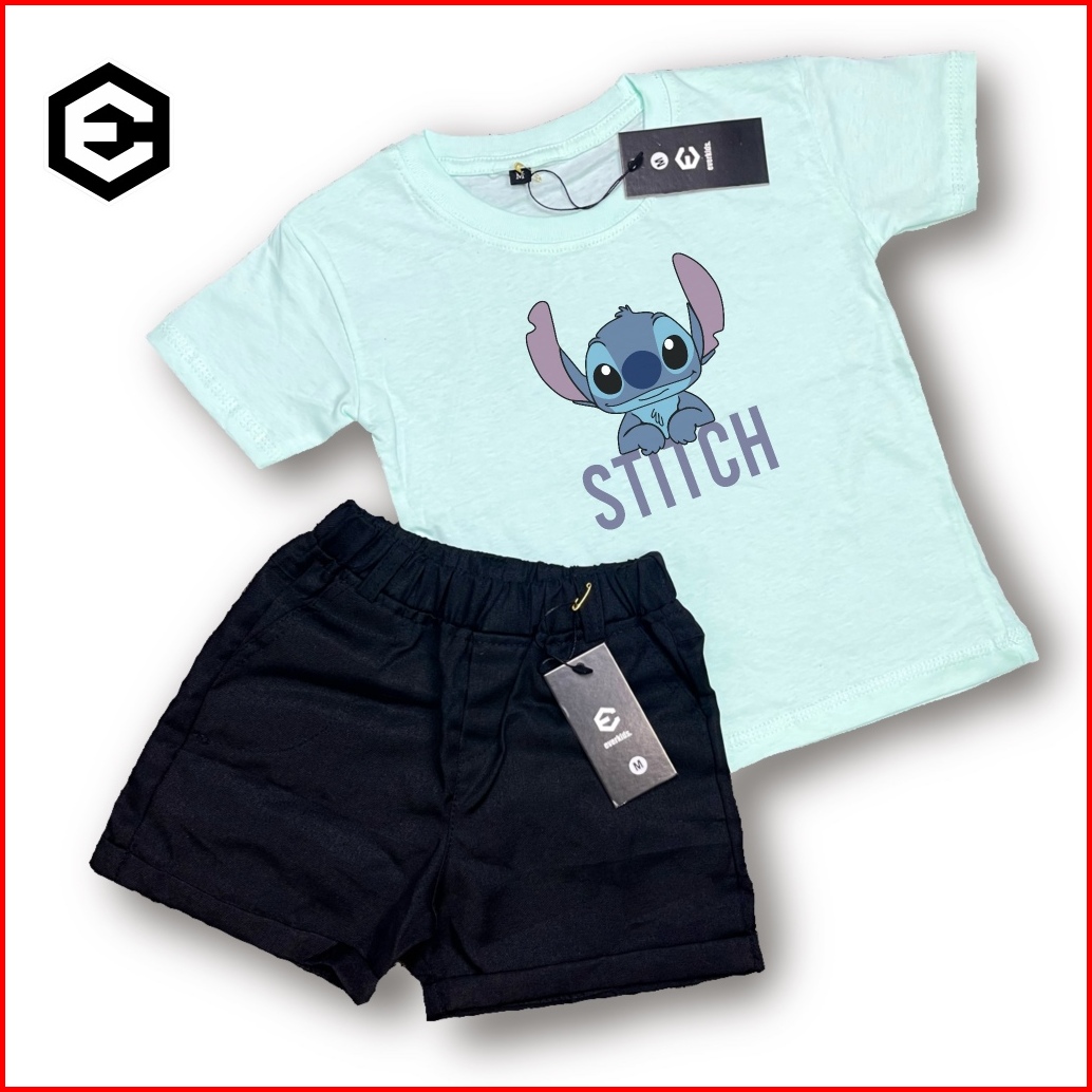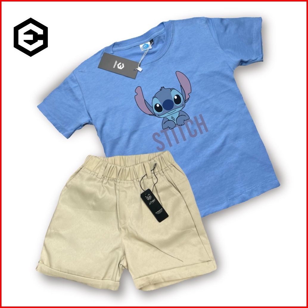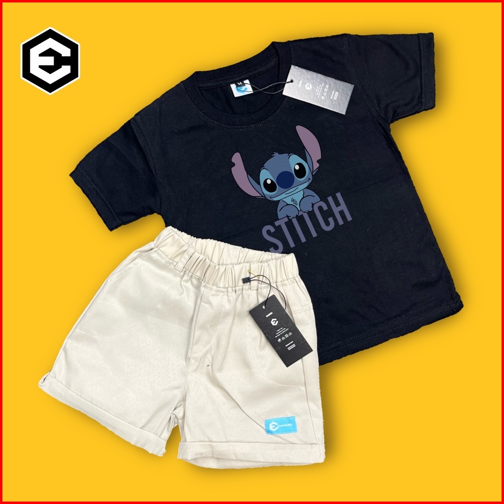 Everkids Setelan Anak 1-6 Thn Sablon Keren Kaos Anak Stitch