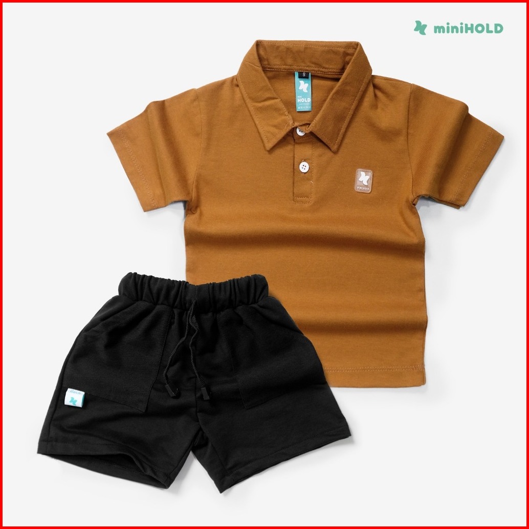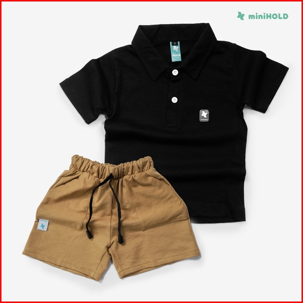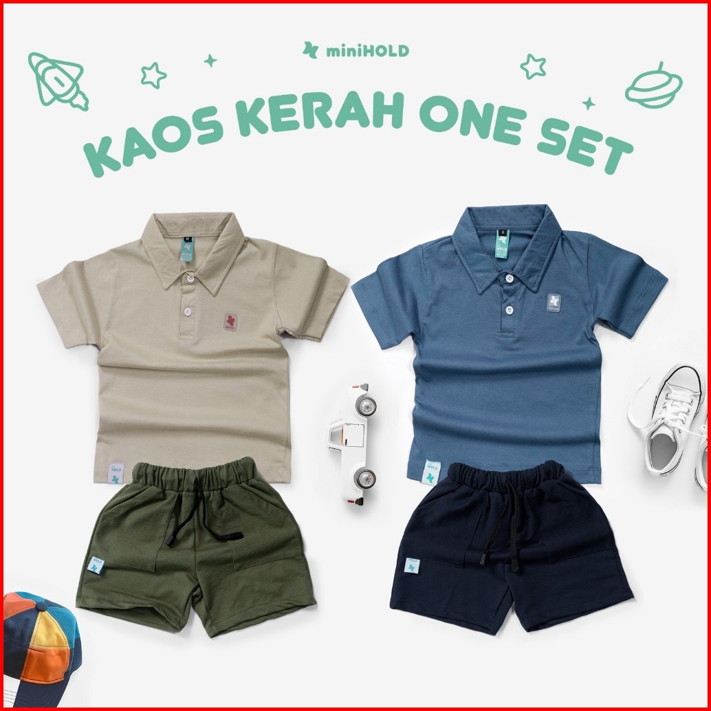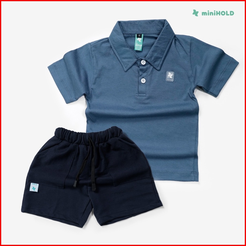 Minihold Kaos Kerah Oneset Short Pants Baby Tery Setelan Kaos Combed 30s Kerah Celana Terry 1-12 Th