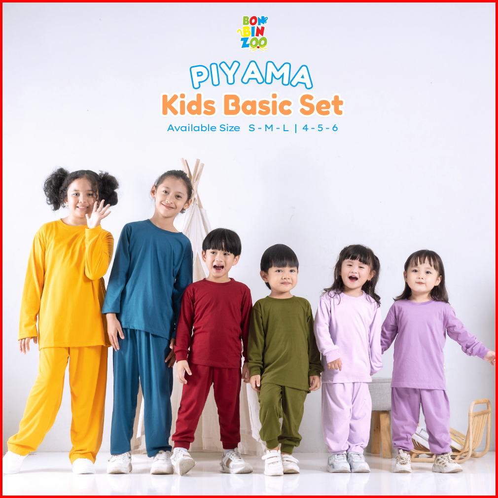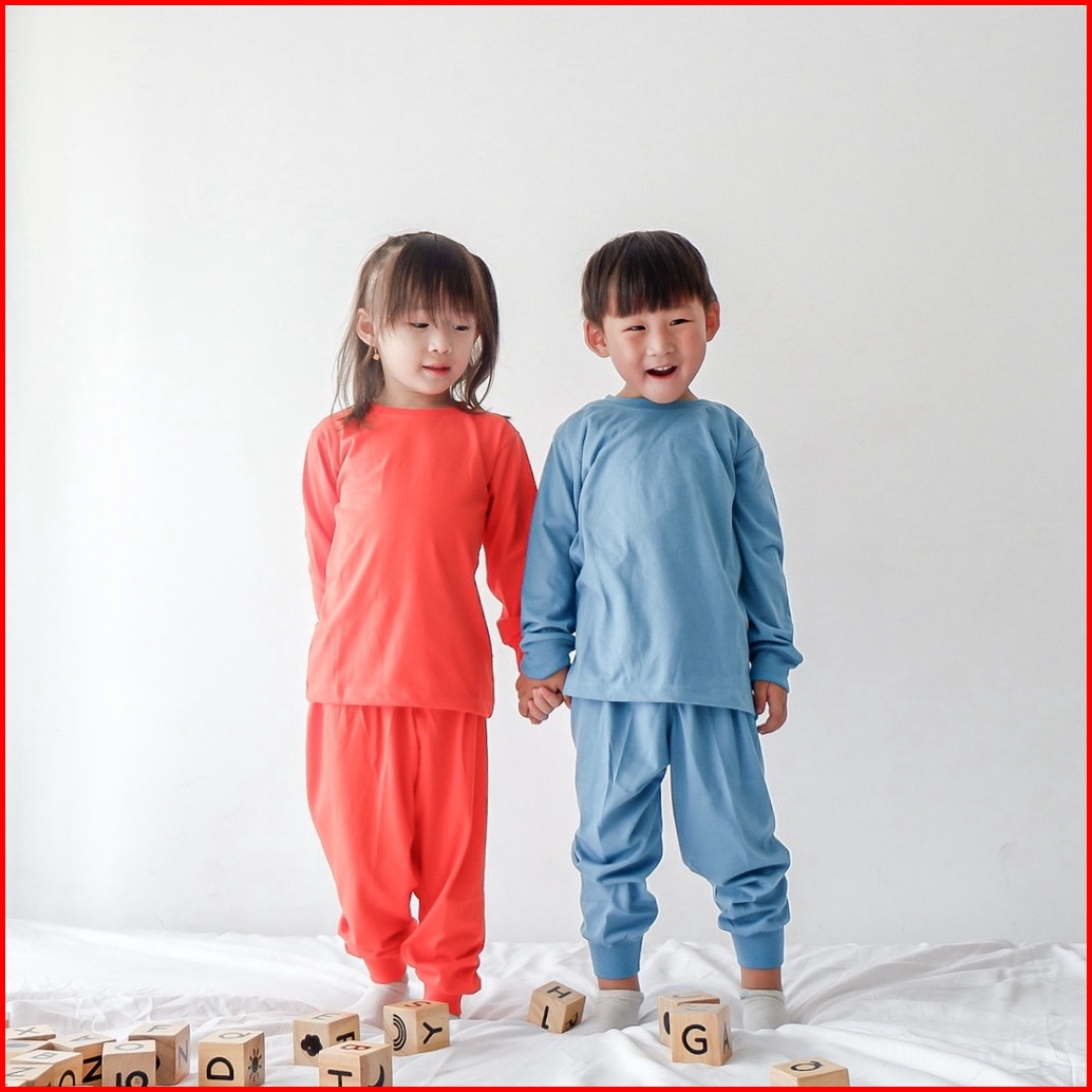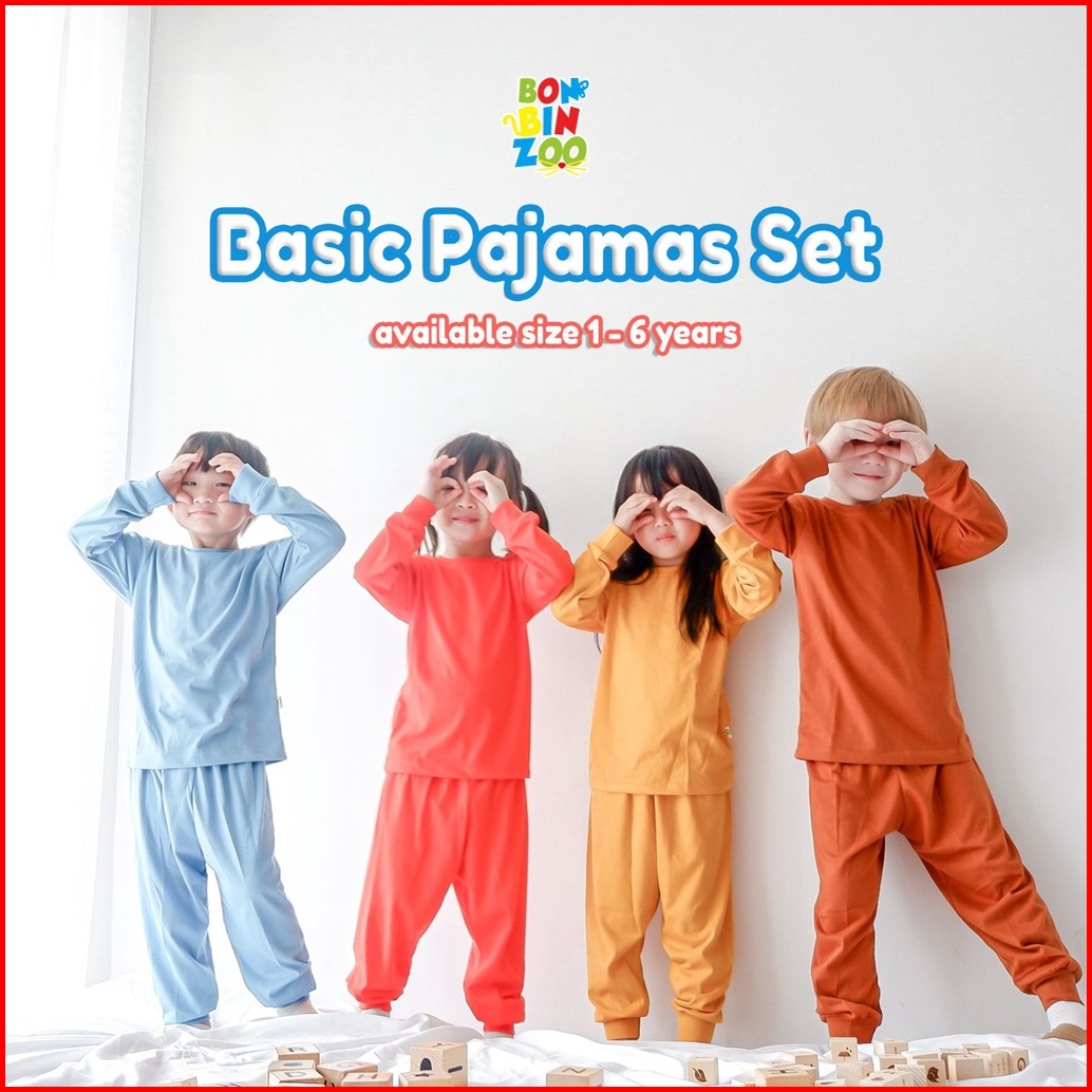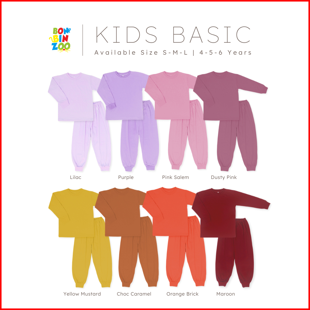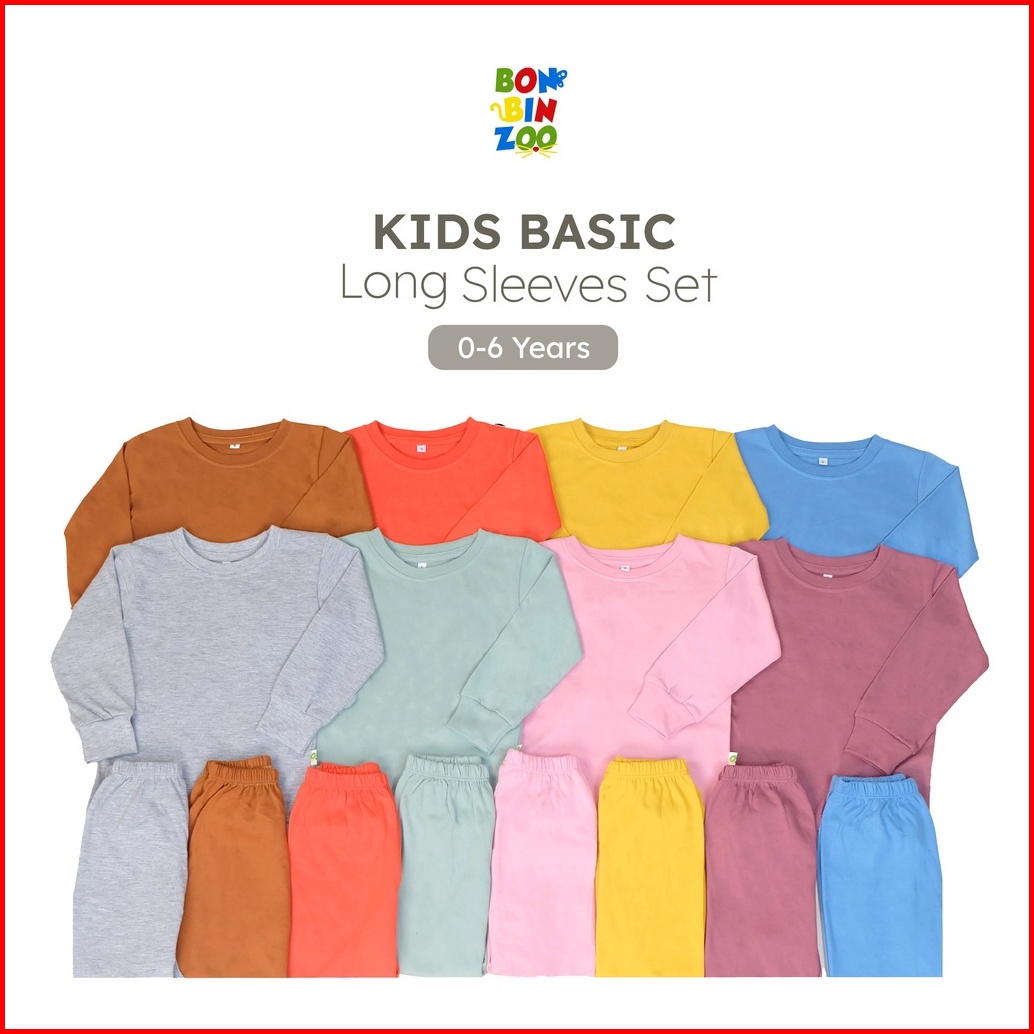 Bonbinzoo - Setelan Tangan Dan Celana Panjang Polos Anak Usia 1 - 6 Tahun Kids Basic