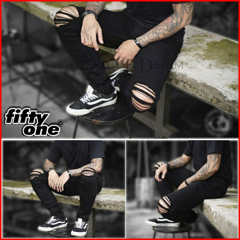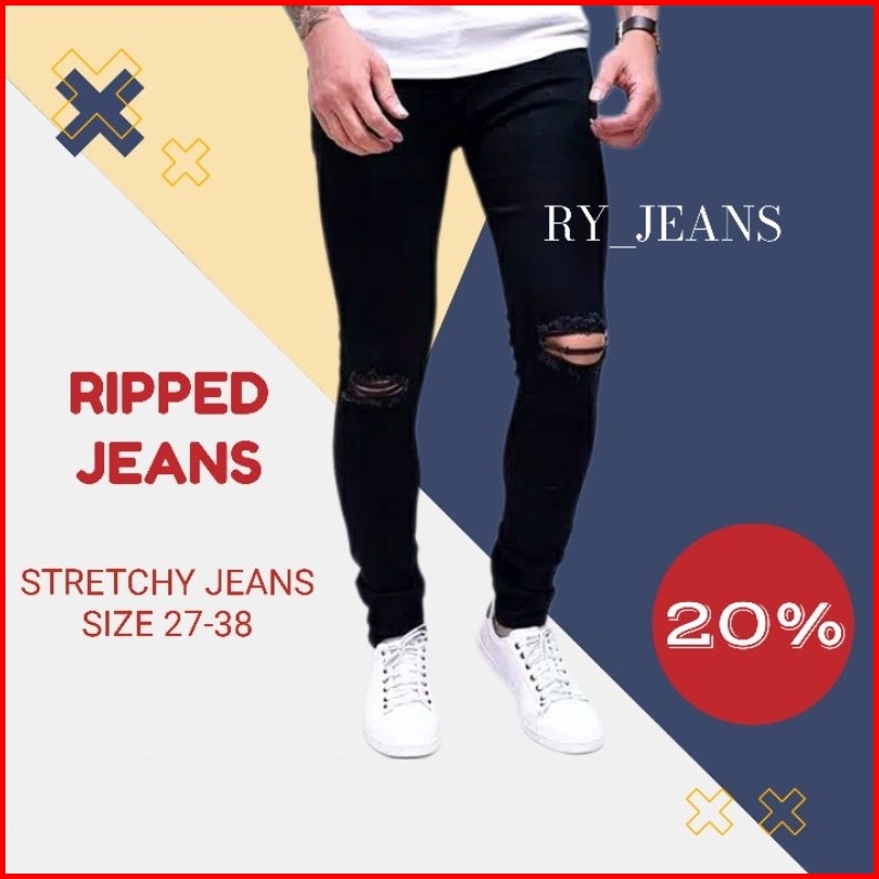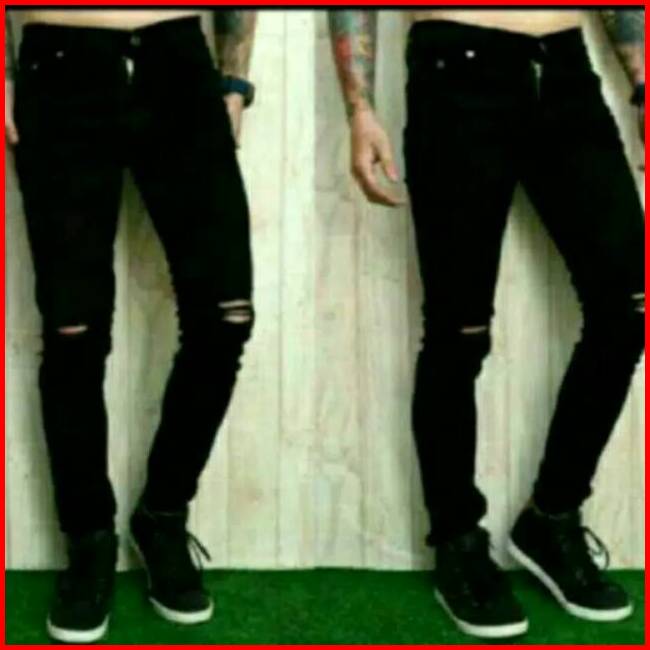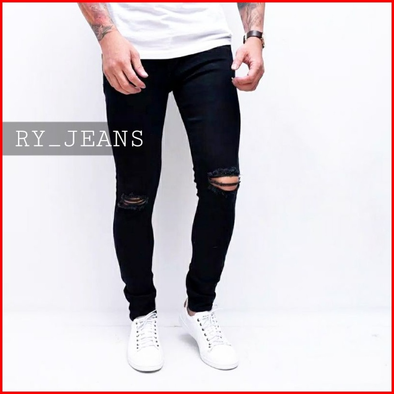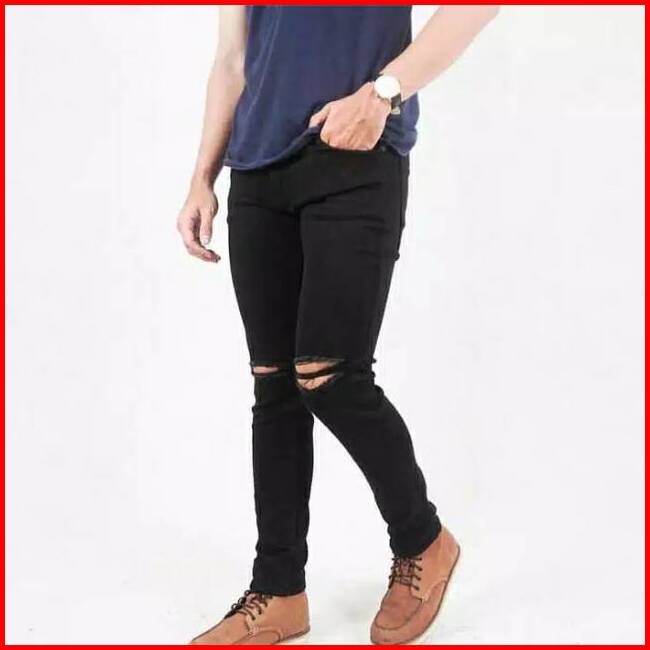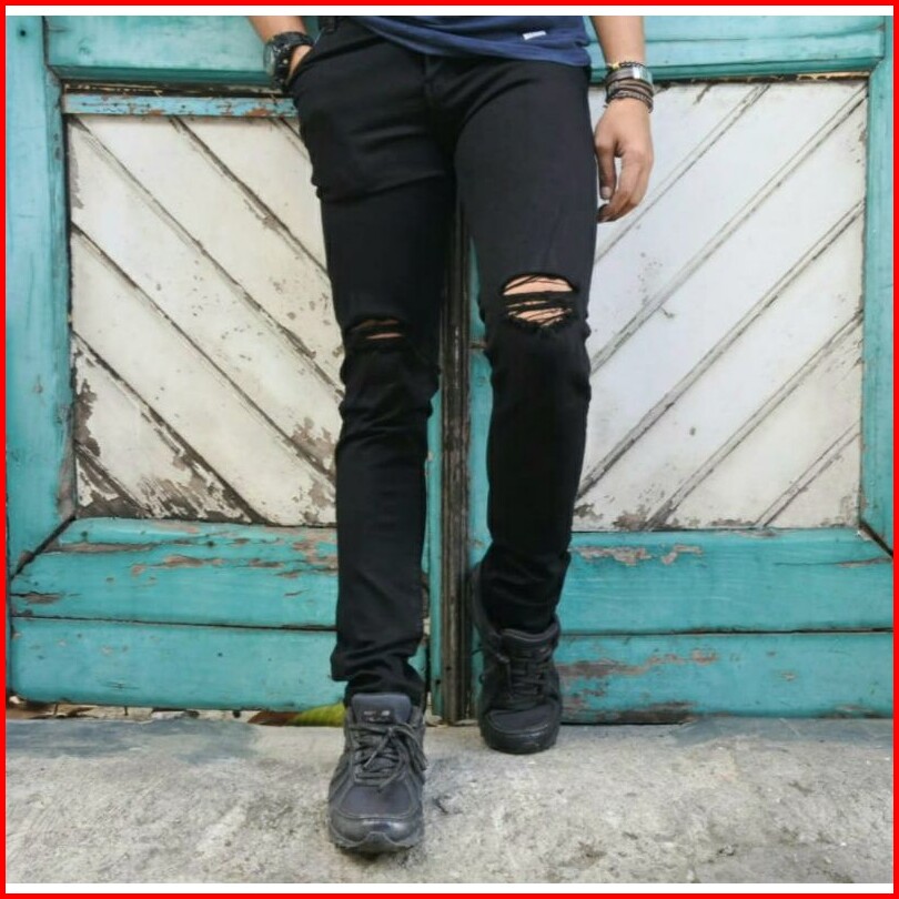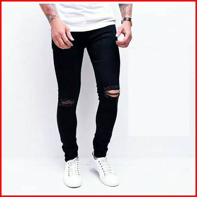 Celana Jeans Sobek Lutut Pria Ripped Jeans Celana Panjang Hitam Pria Street Melar Skinny Jeans Pria