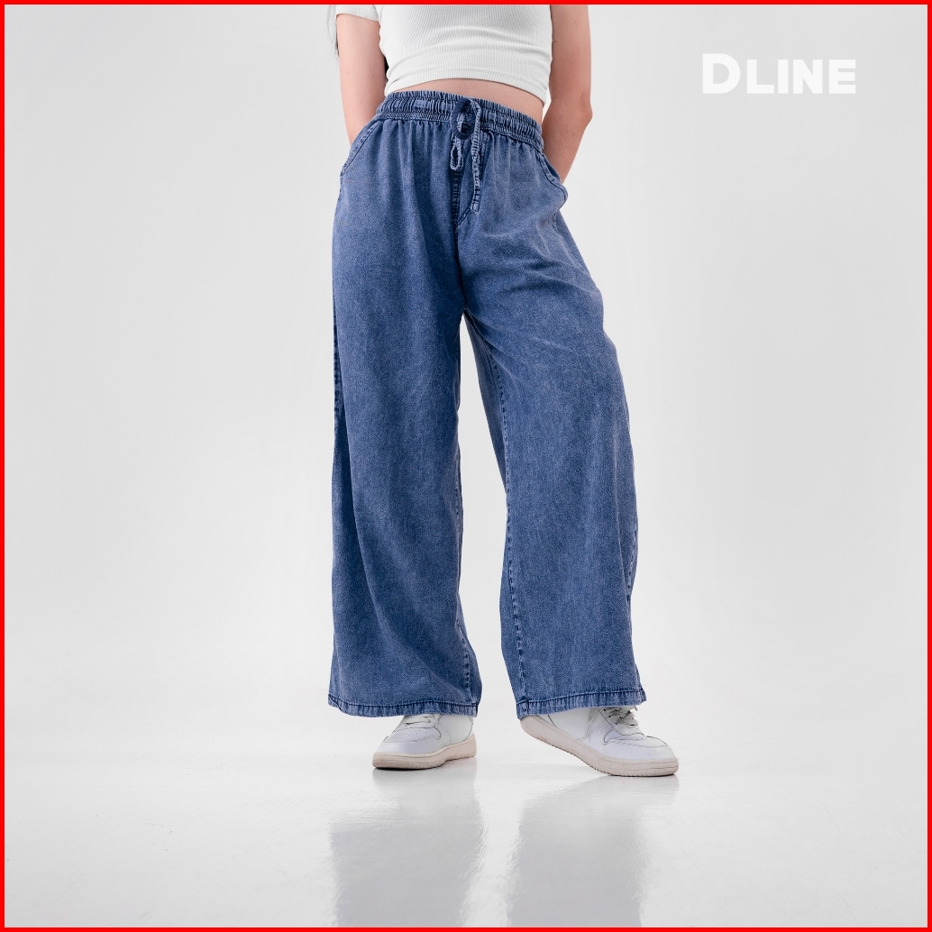 Celana Kulot Panjang Jeans Wanita Fit 100 Kg Bigsize Jumbo Pinggang Karet Denim Coco Culotte Dline