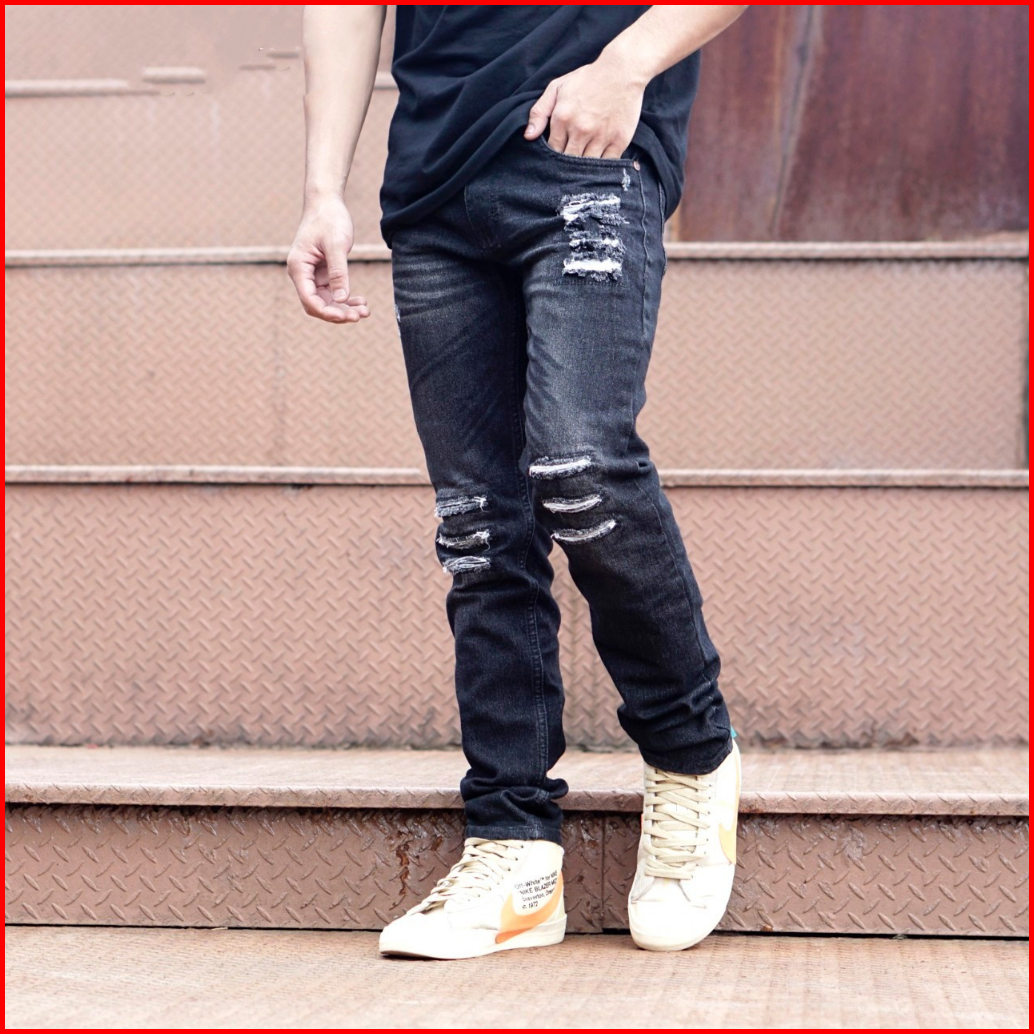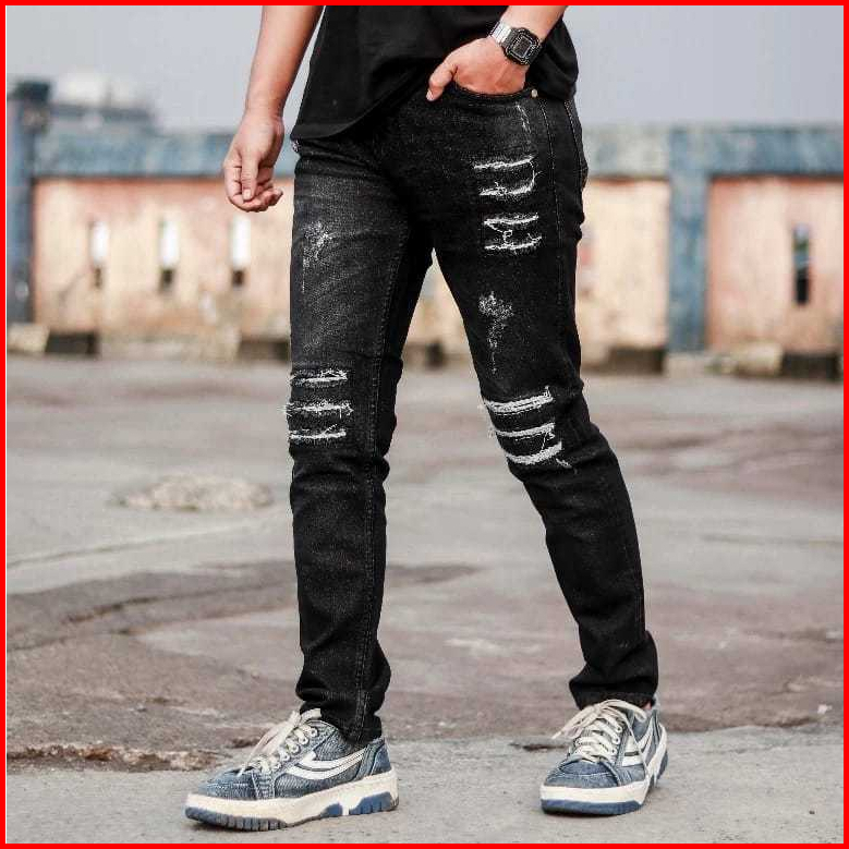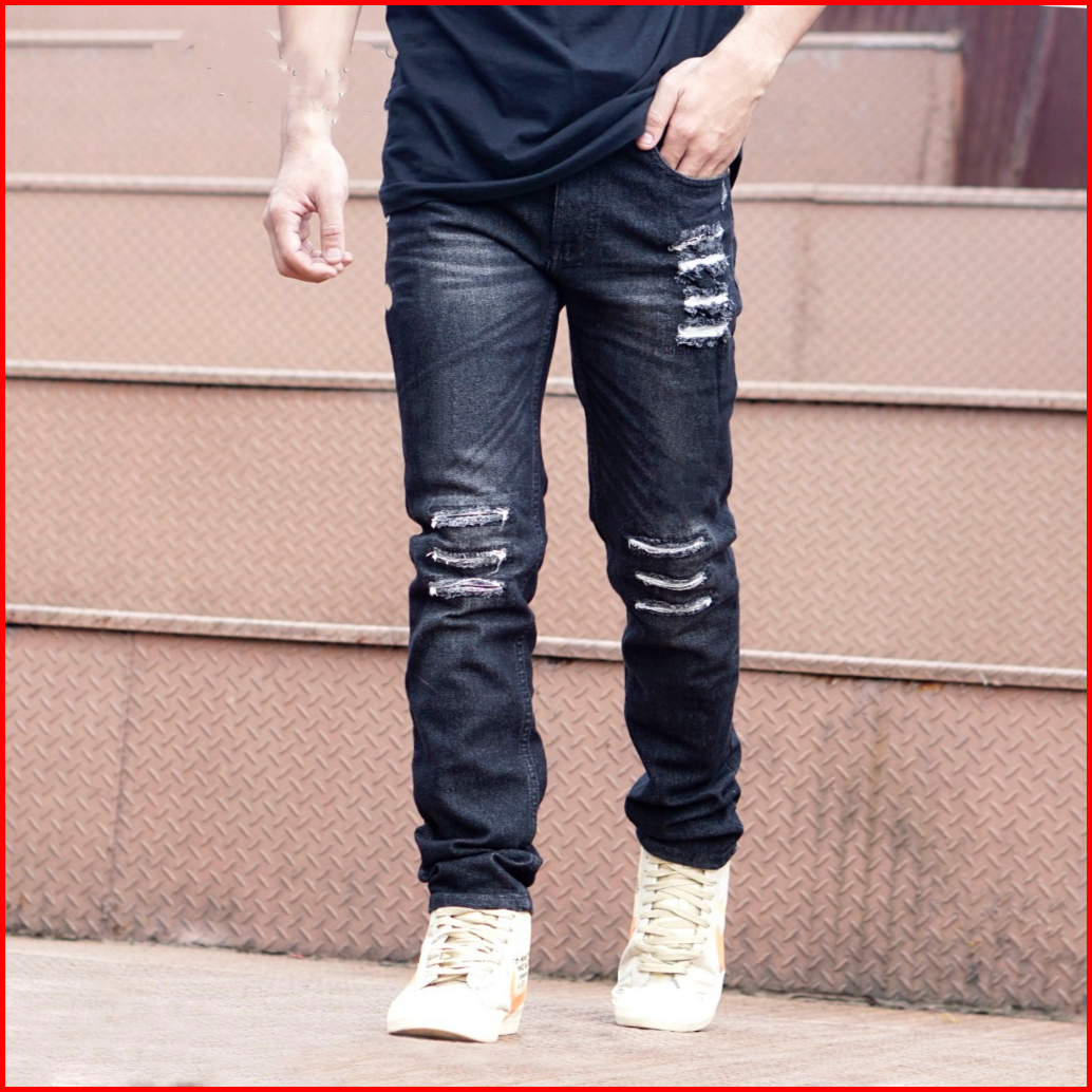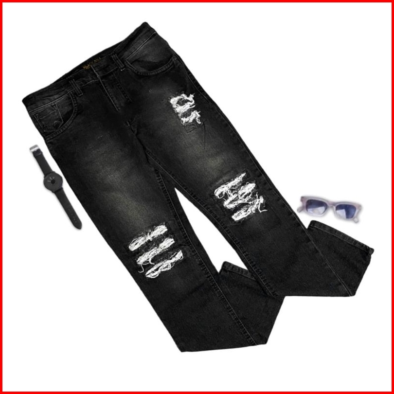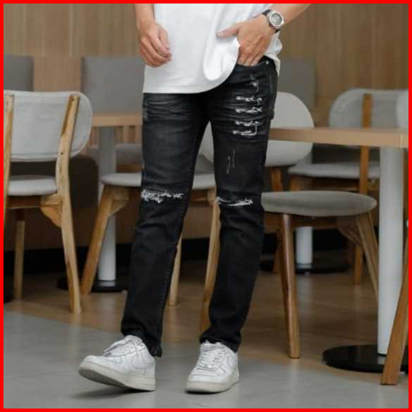 Celana Jeans Bikers Pria Ukuran Jumbo 2746 Ripped Style Black Wash Premium Look