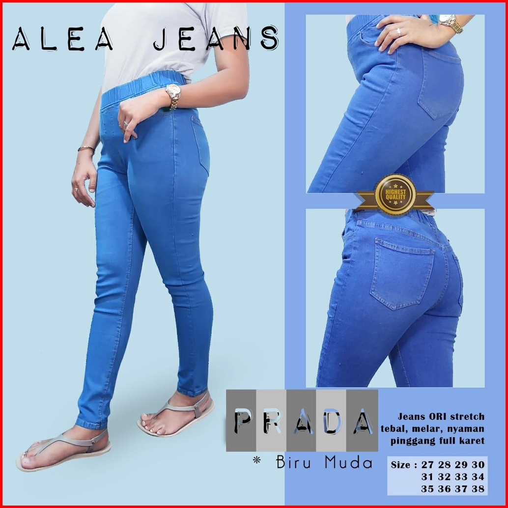 Promo Celana Jeans Wanita - Pinggang Karet - Original Prada Lokal