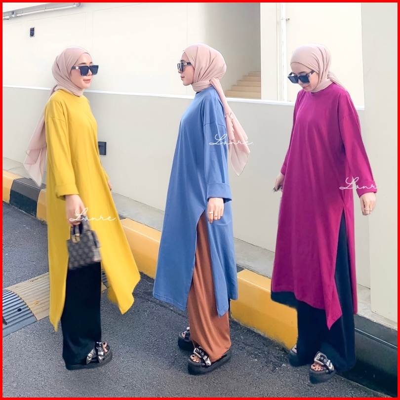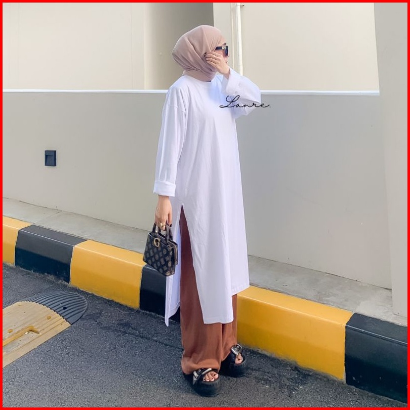 Nuna Tunik Busui - Midi Dress Busui High Slit - Tunik Jumbo Bahan Kaos - Atasan Warna Putih Agustusan
