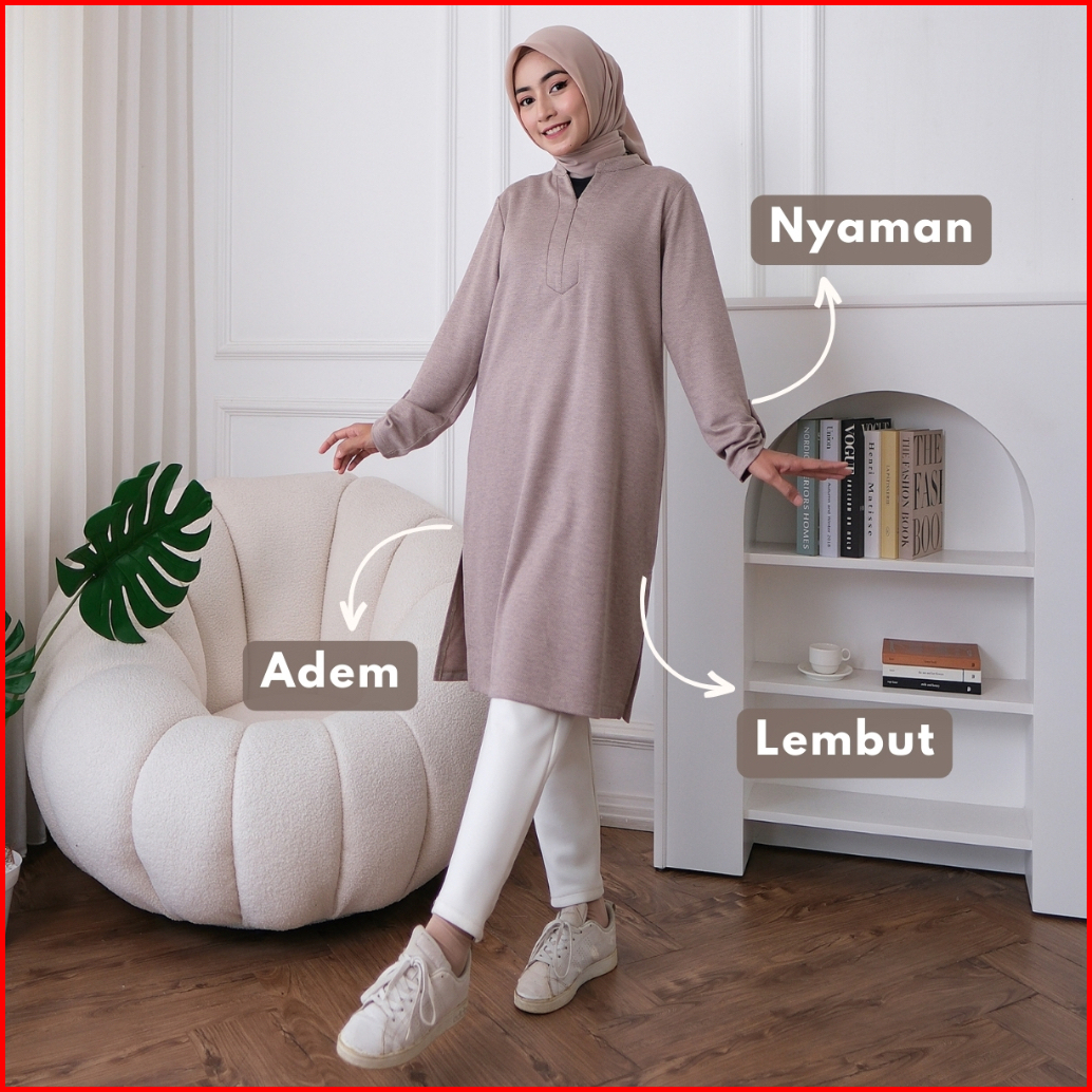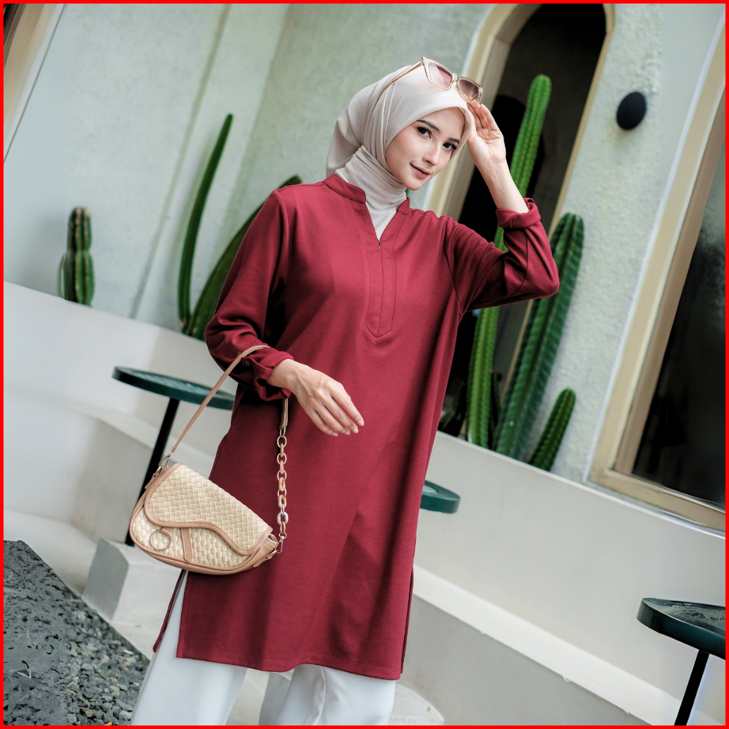 Kaudia - Inaya Tunik Lengan Panjang Kl-24 Atasan Perempuan Muslimah Restleting Jumbo Busui