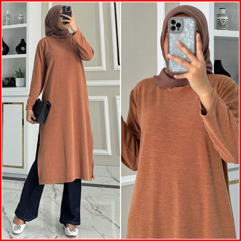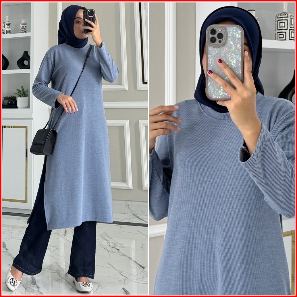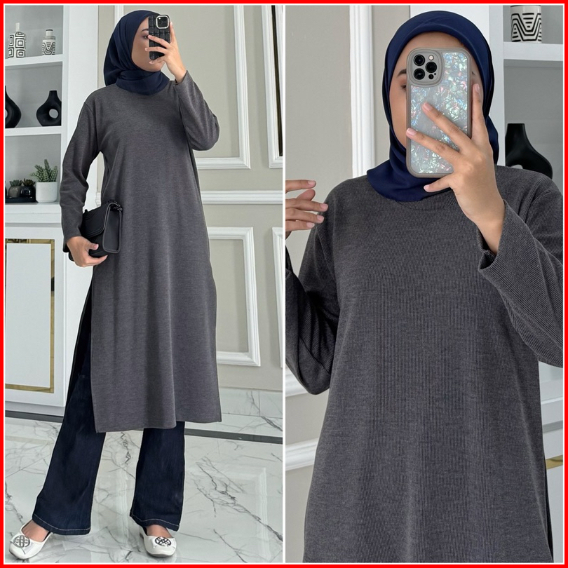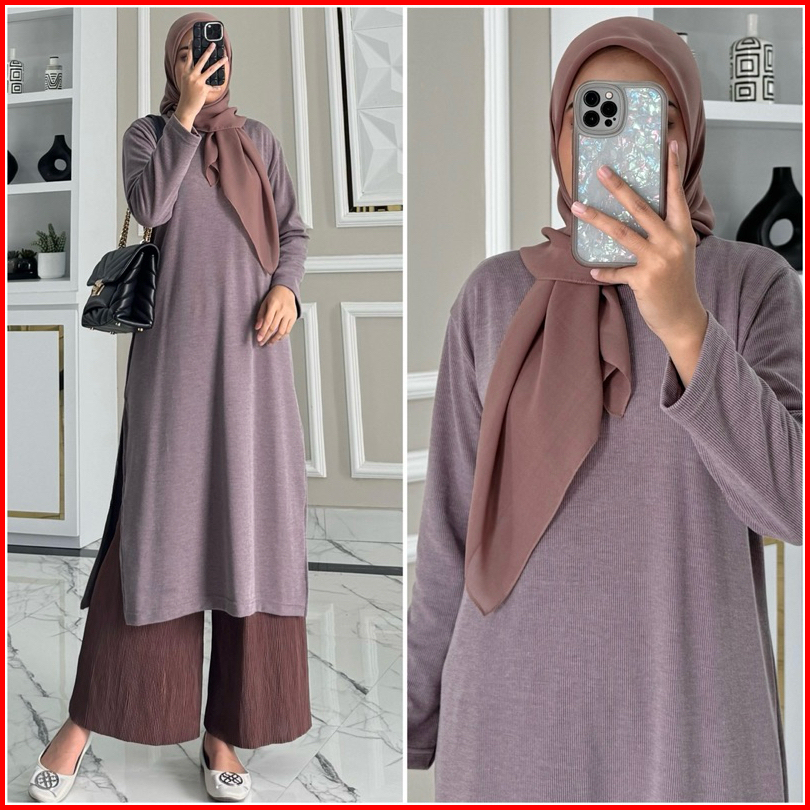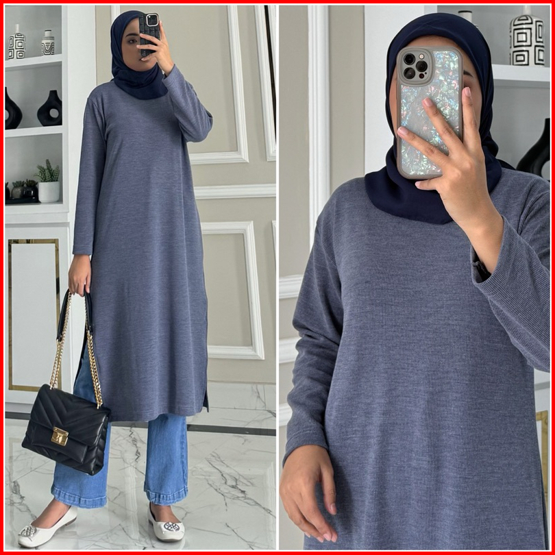 Abigail Knitt Tunik By Zalfa Outfit Baju Atasan Wanita Muslim Tunik Harian Panjang Polos Snow Knitt Premium