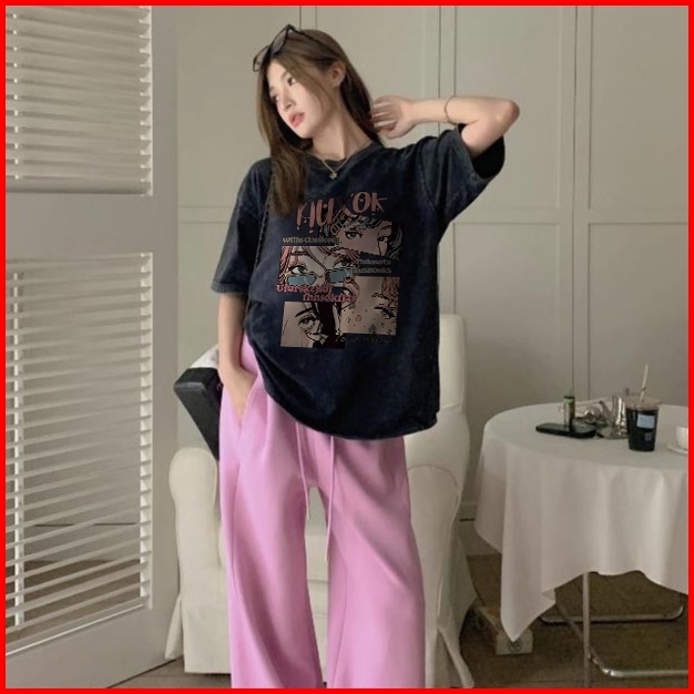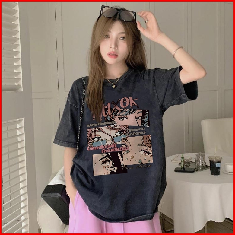 Forteid T-shirt Lengan Pendek Baju Kaos Oversize Wanita Baju Kaus Wanita Korea Baju Atasan Wanita Terbaru Cetakan Gadis