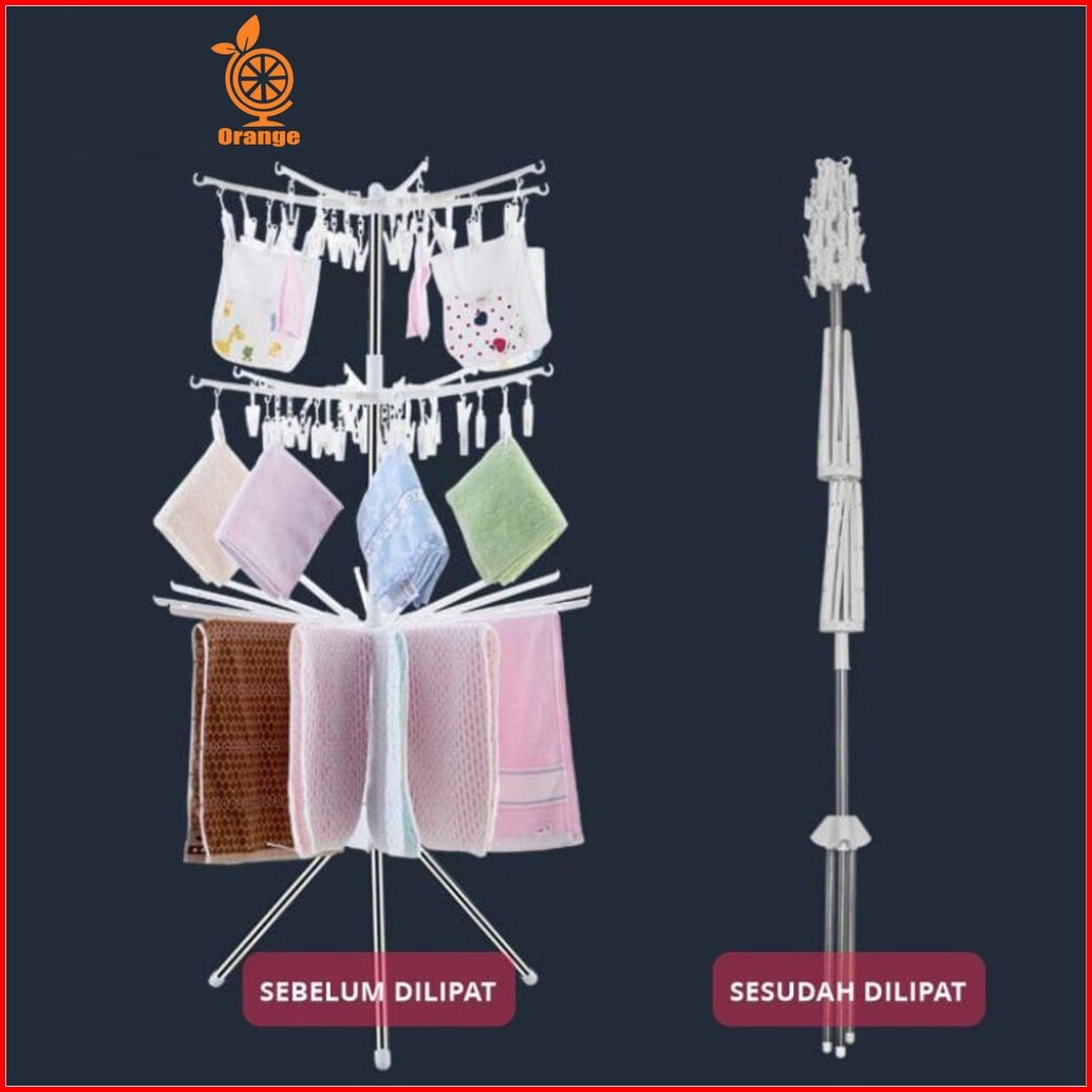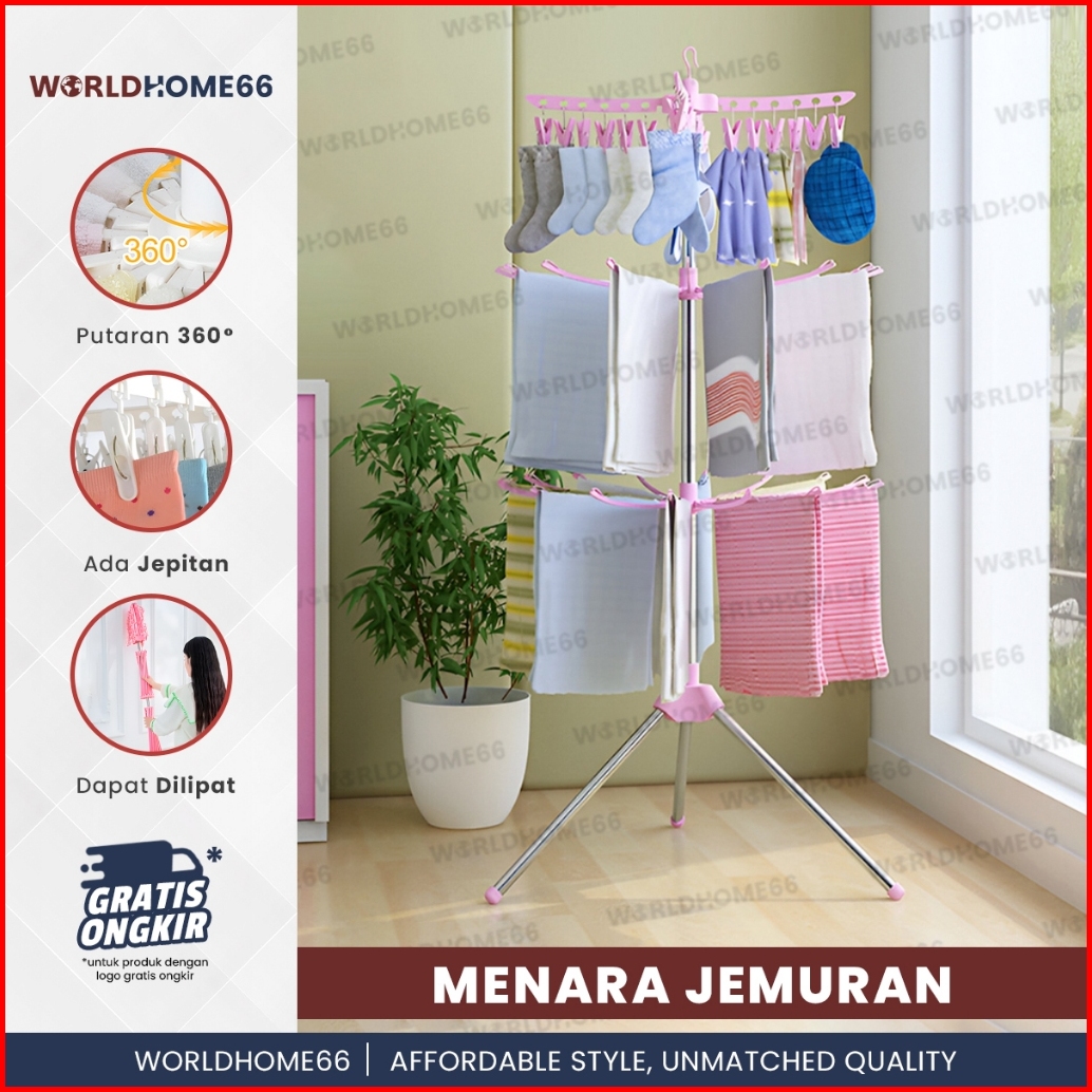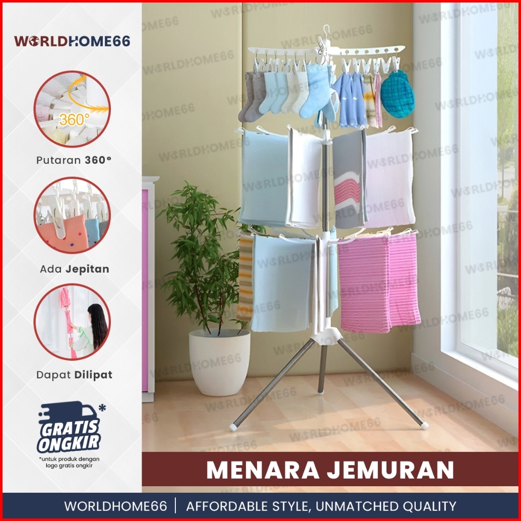 Worldhome Jemuran Menara 3 Susun Jemuran Lipat Minimalis Jemuran Baju Kaos Kaki Celana Dalam