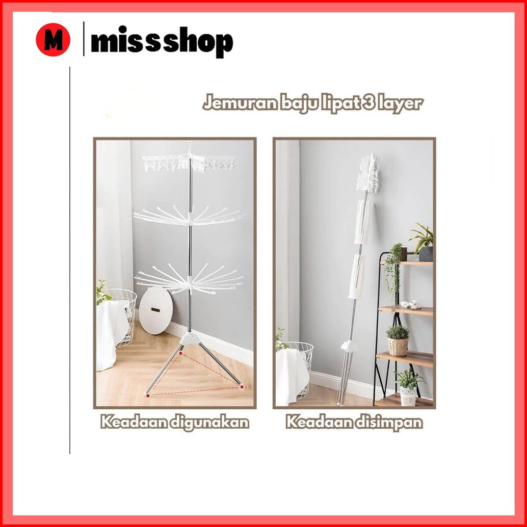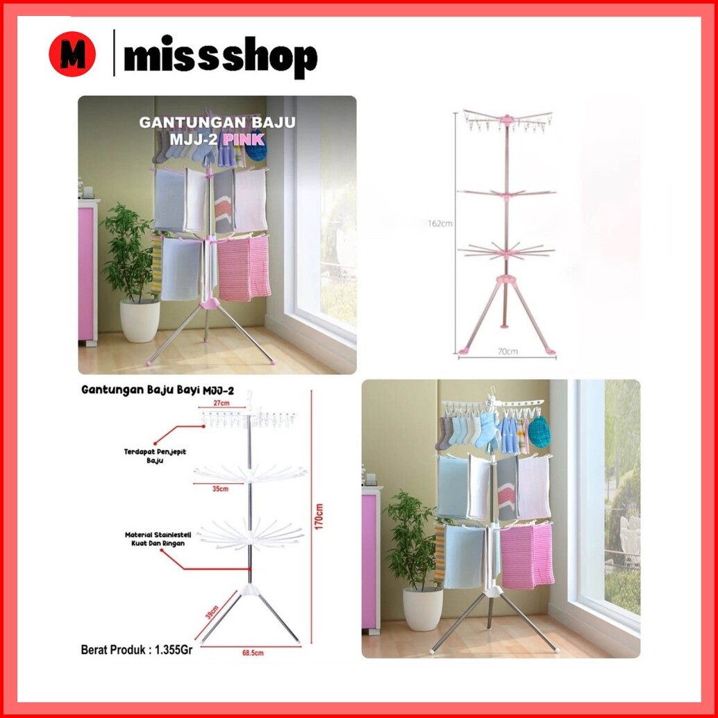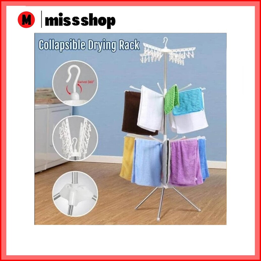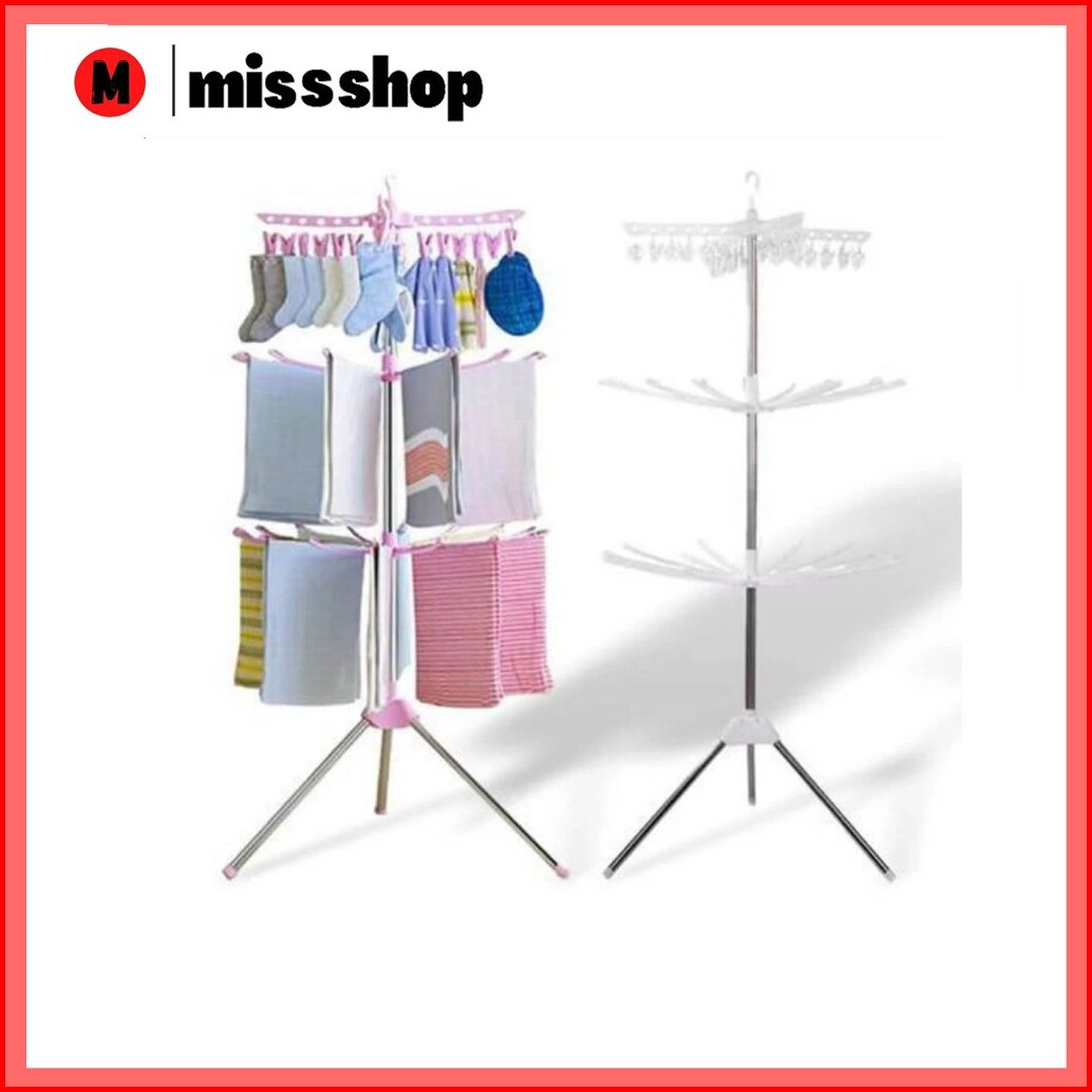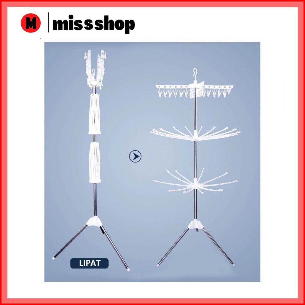 Ms Jemuran Menara Rak Jemuran Baju Bayi Lipat Rak Susun Handuk Foldable Hanger 10 Jari-jari