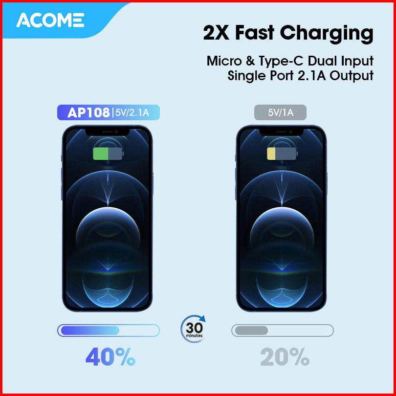 Acome Powerbank 10000mah 2.1a Dual Input Port Micro Type-c Original Ap108 - Garansi Resmi 18 Bulan