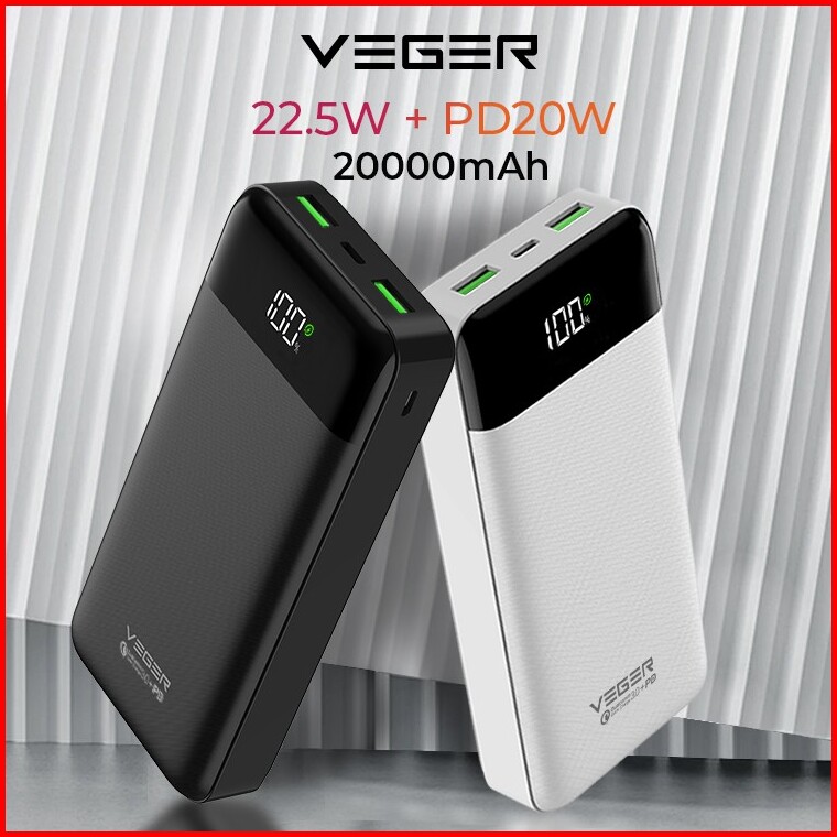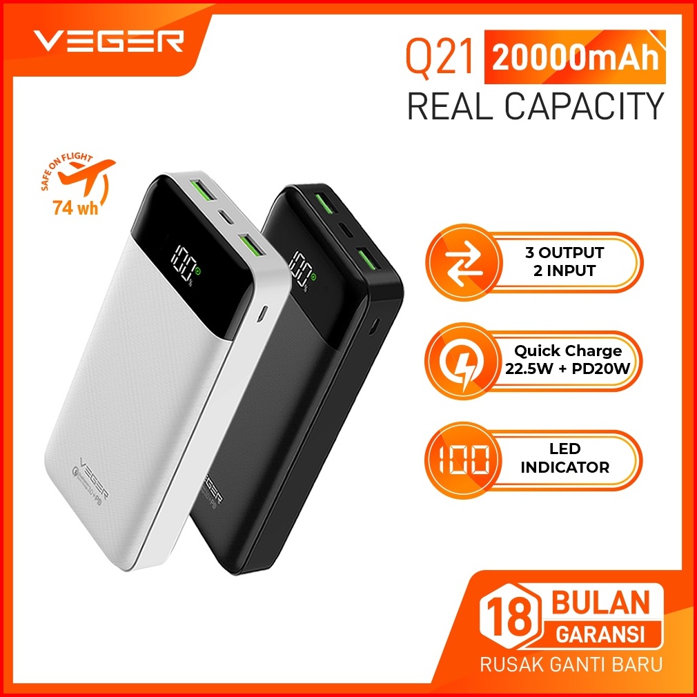Veger Powerbank Q21 20000mah Led Digital Display Fast Charging Quick Charge 22.5w Pd 20w Power Bank