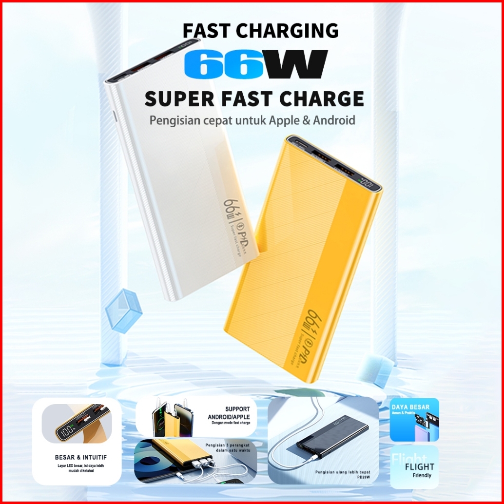 Mivok 66w Super Powerbank Fast Charging 20000mah Slim Micro Type-c Ios Usb Android Cable Data Untuk Iphone Samsung Xiaom