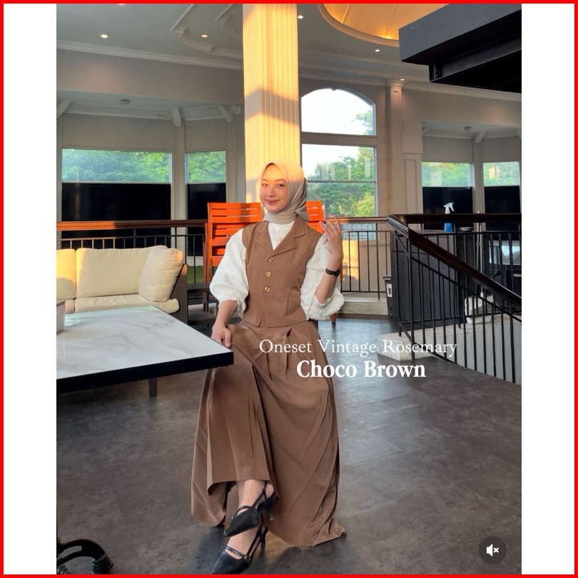 Set Vintage Rosemary Rok Vest Kemeja Basic Formal Vintage Yearbook Bysonia