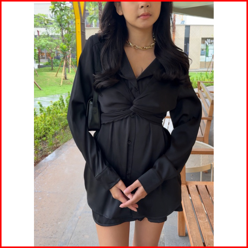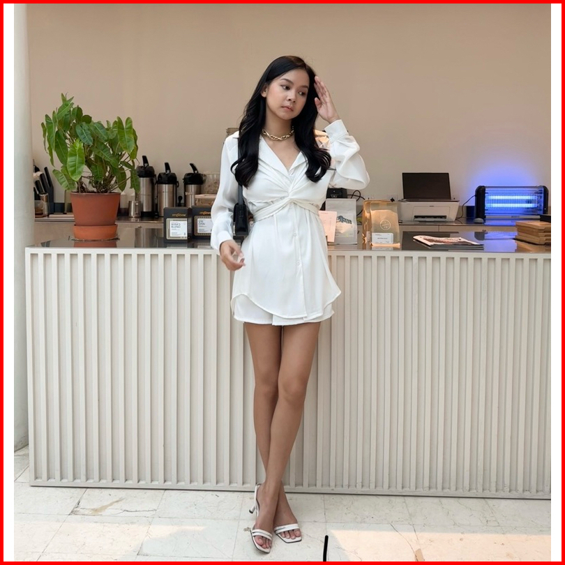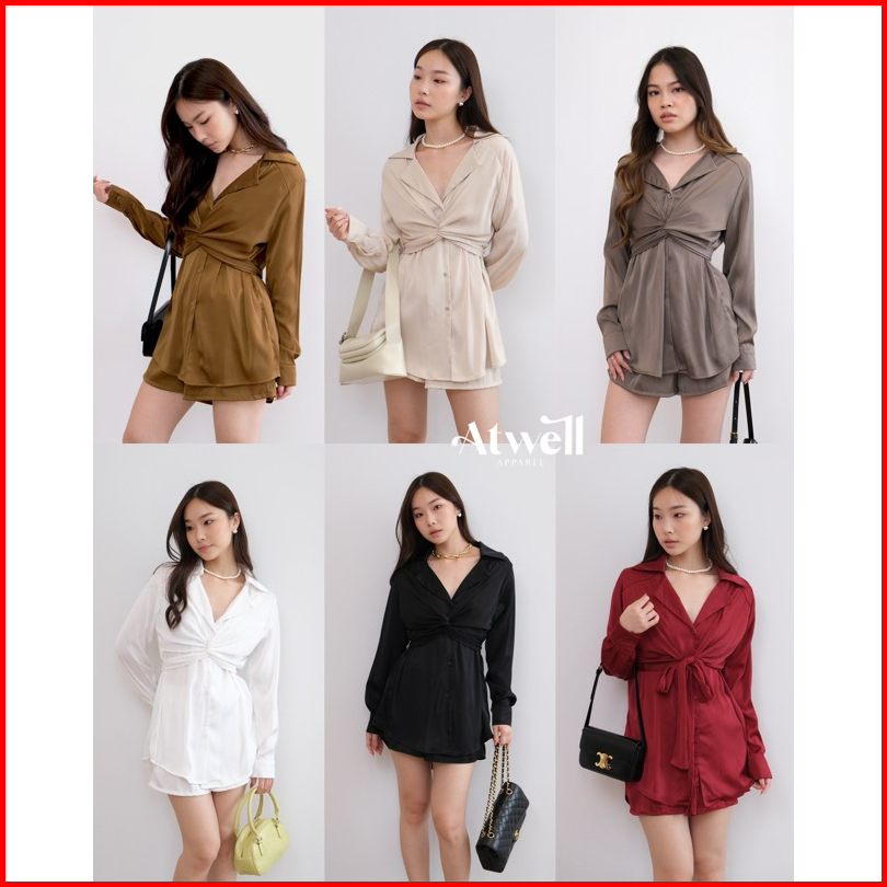 Aster Wrap Set With Short Pants Garis-garis Katun Sintetis