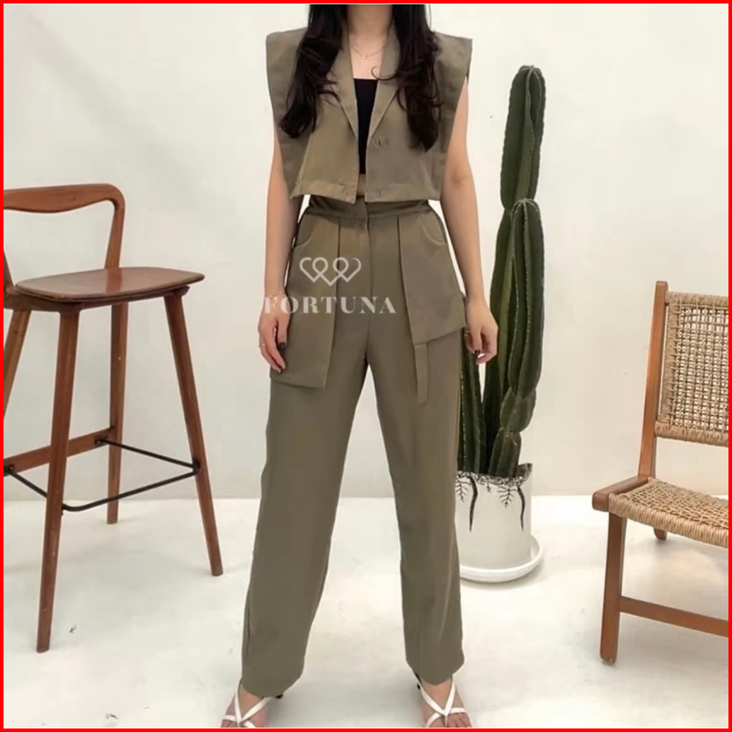 Emma Set Fortuna By Fortuna Fuji Choice Vest One Set Kekinian Atasan Dan Celana