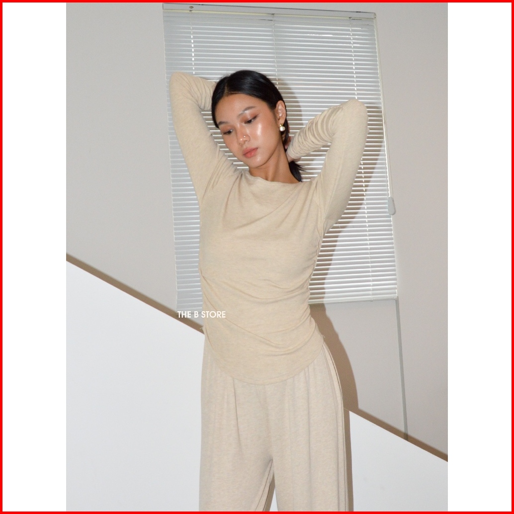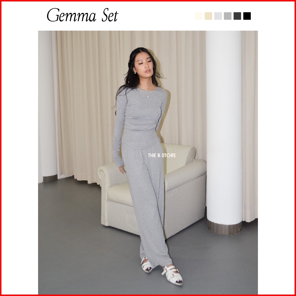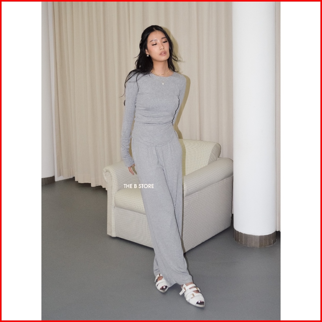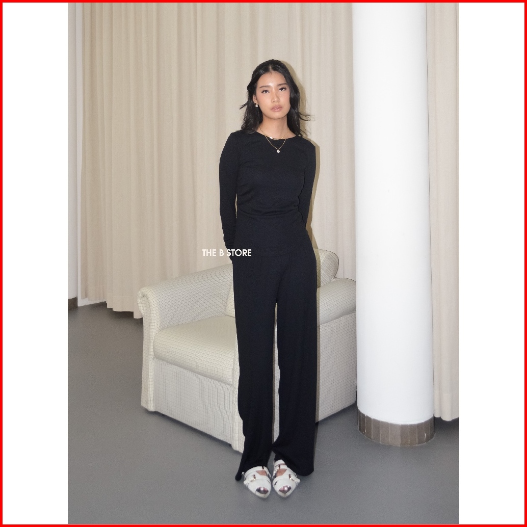 Gemma Set Thebstore Setelan Wanita Oneset Baju Rib Knit Lengan Panjang Celana Kulot Rib Knit Stretch