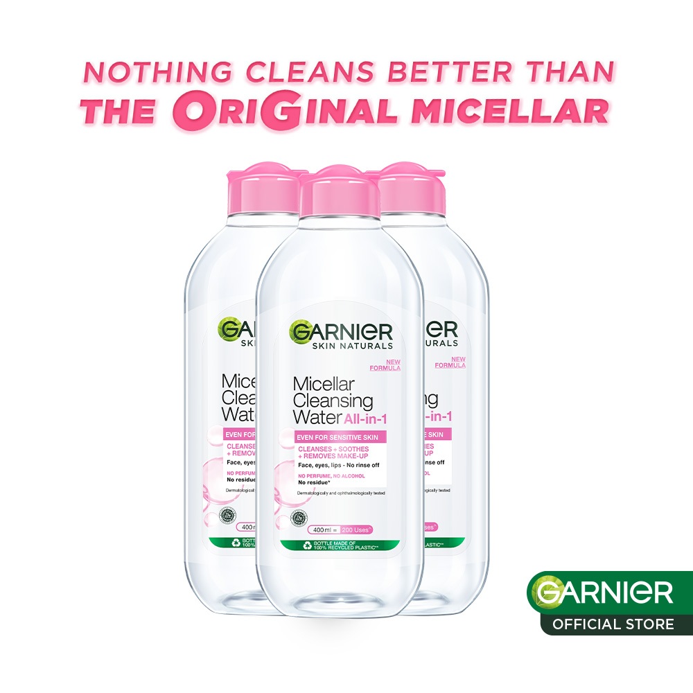 Garnier Micellar Water Pink - 400 ml - Skincare Pembersih Wajah Kulit Sensitif (PAKET HEMAT ISI 3) Terlaris