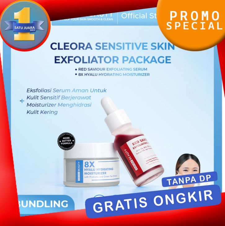 Cleora Sensitive Skin Exfoliator Package Special Bundle 2in1 - Red Saviour + 8x Hyalu Hydrating Moisturizer Paket