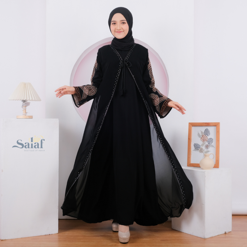 Gamis Lebaran Wanita Terbaru - Abaya Hitam Turkey Gamis Syari Muslimah Kombinasi Renda Abaya Zara Dress Arab Saudi 951