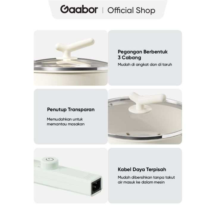 NEW ARRIVAL Gaabor Panci Listrik Food Grade Electric Cooker Anti Lengket Kapasitas 2L 600W Tutup Kaca Free Kukusan / EC-