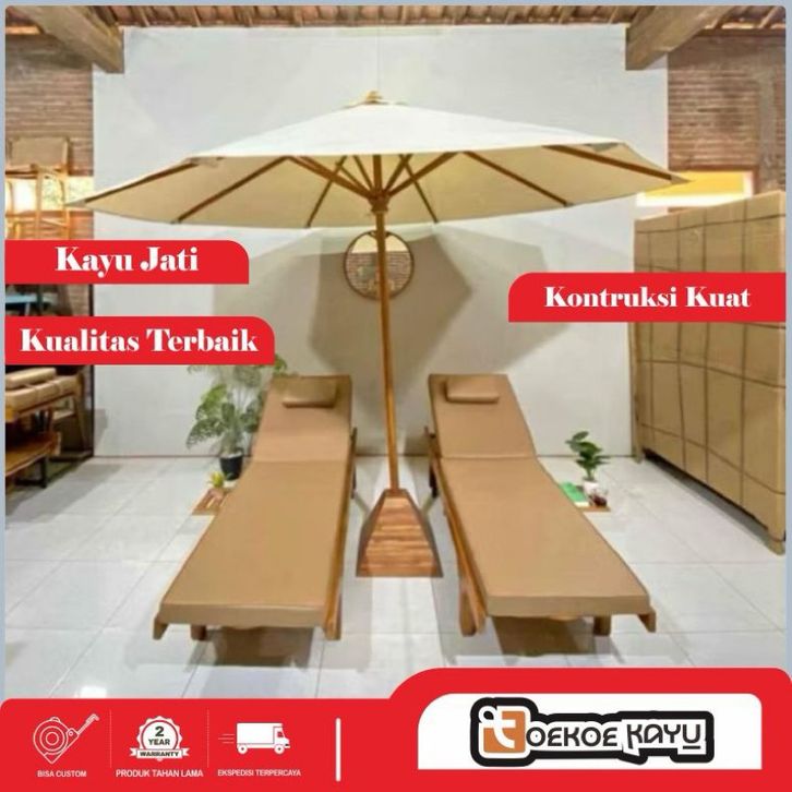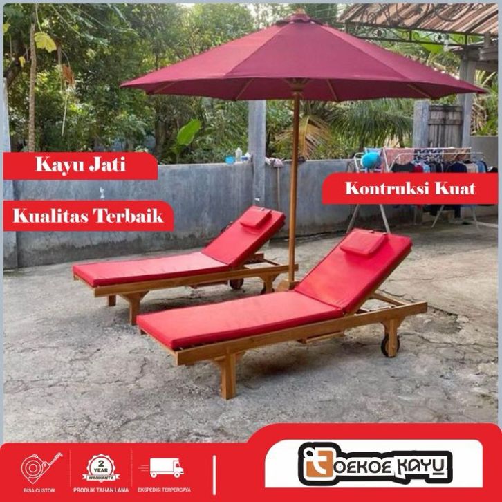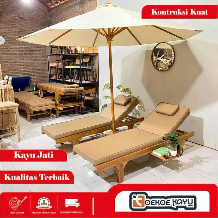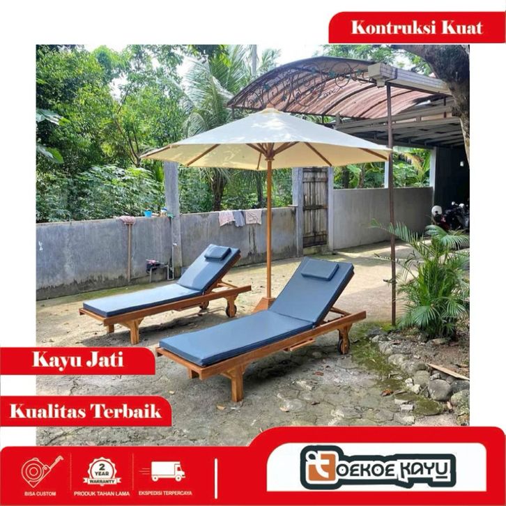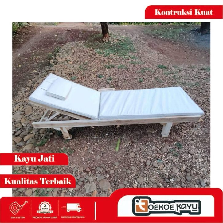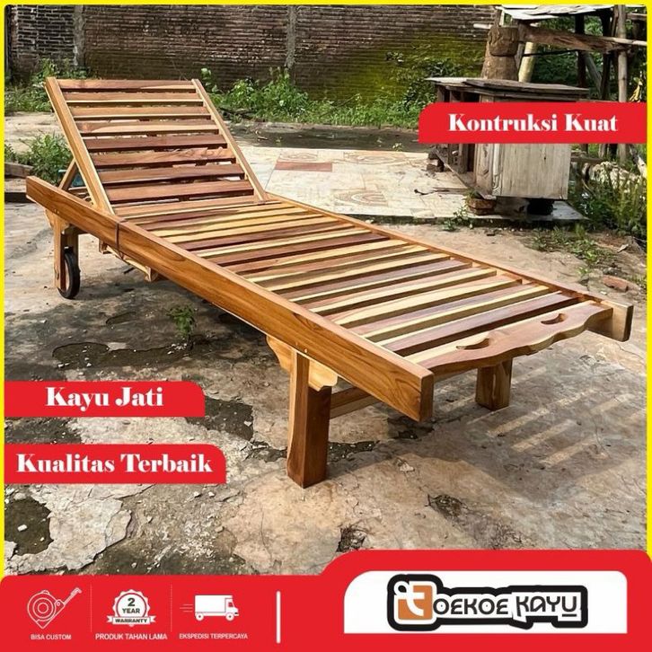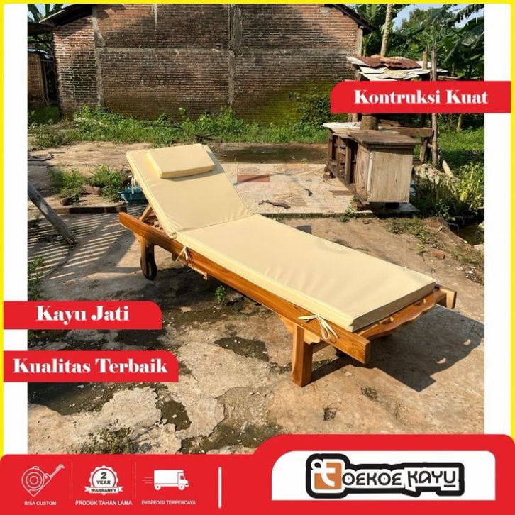 Kursi Pantai Santai Kolam Renang Outdoor Sun Lounger Cocok Untuk Bangku Taman Malas Bahan kayu Jati Berkualitas