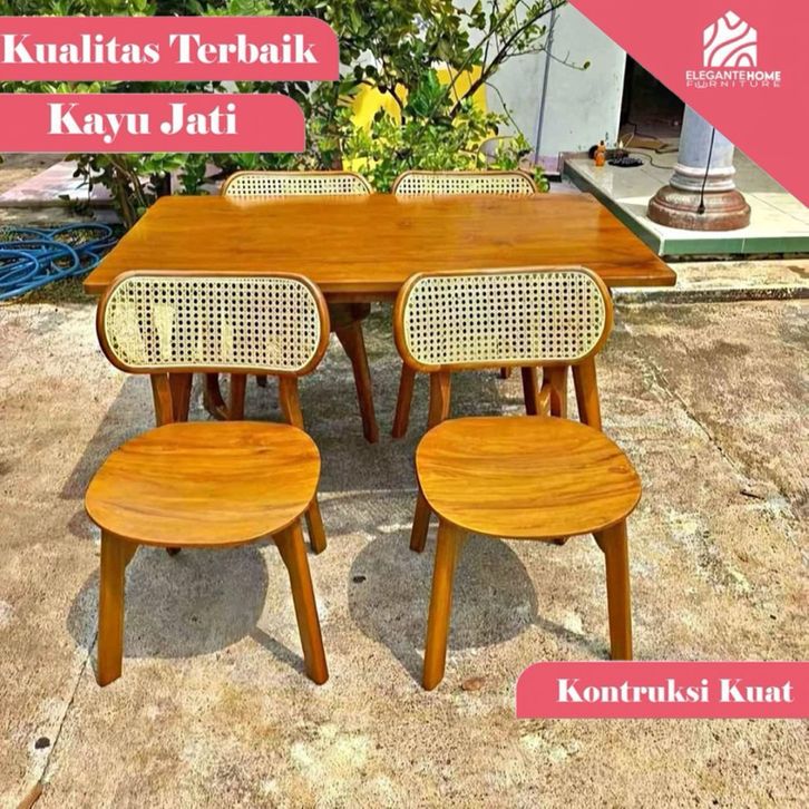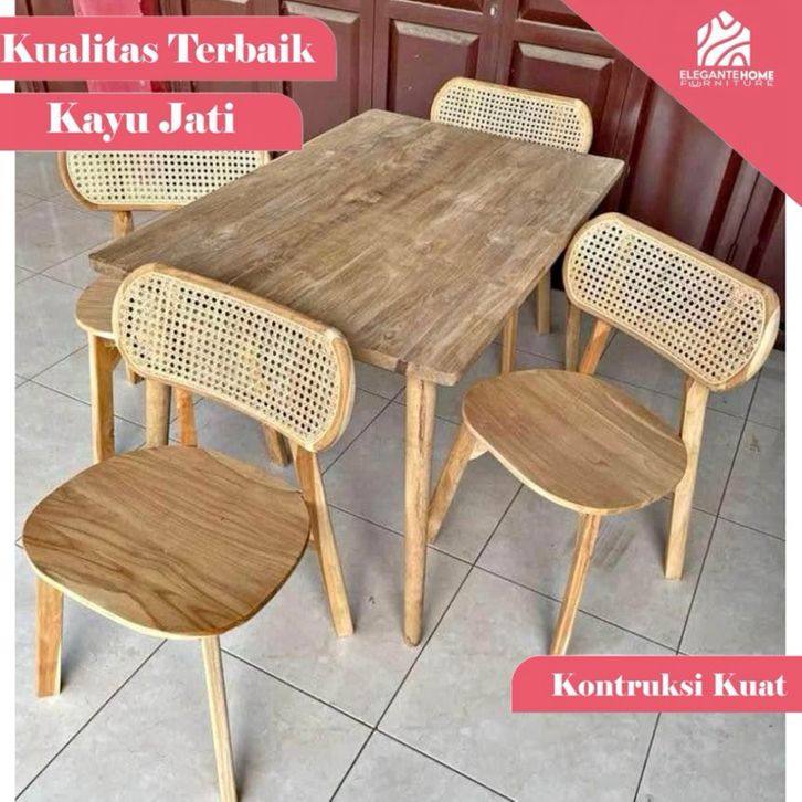 meja kursi makan rotan, 1set kursi kacang rotan, meja makan minimalis, meja kursi makan rotan 4 kursi