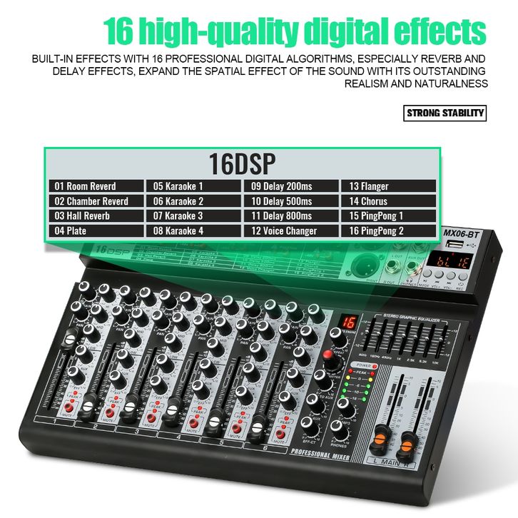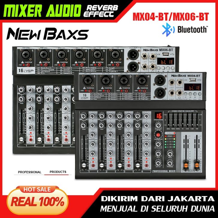 NEW BAXS Mixer audio efek digital profesional 6/4-channel MX06BT/ MX04BT EQefek 16DSP sinyal USB Bluetooth/MP3amplifier