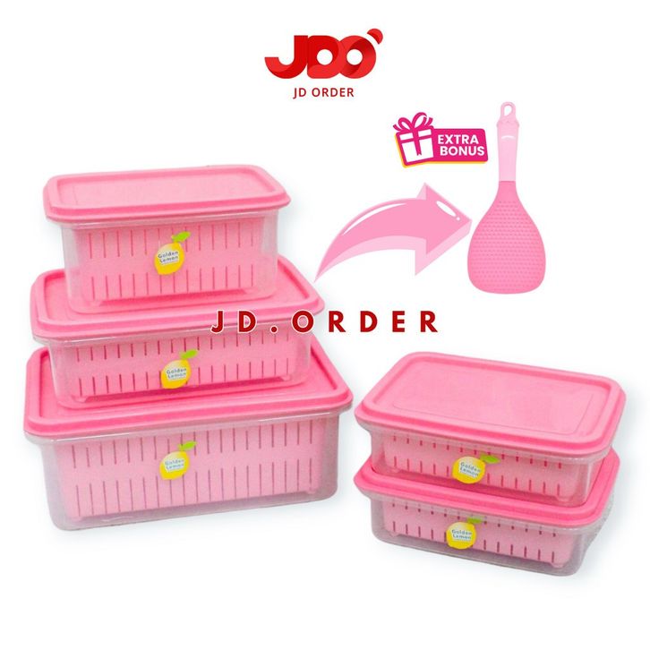 Set (5in1) Kotak Makan Saringan Ikan Sayur Buah Free Sendok Nasi Anti Lengket Golden Lemon