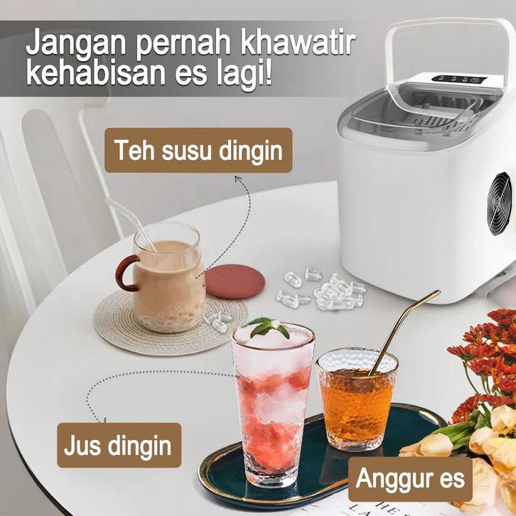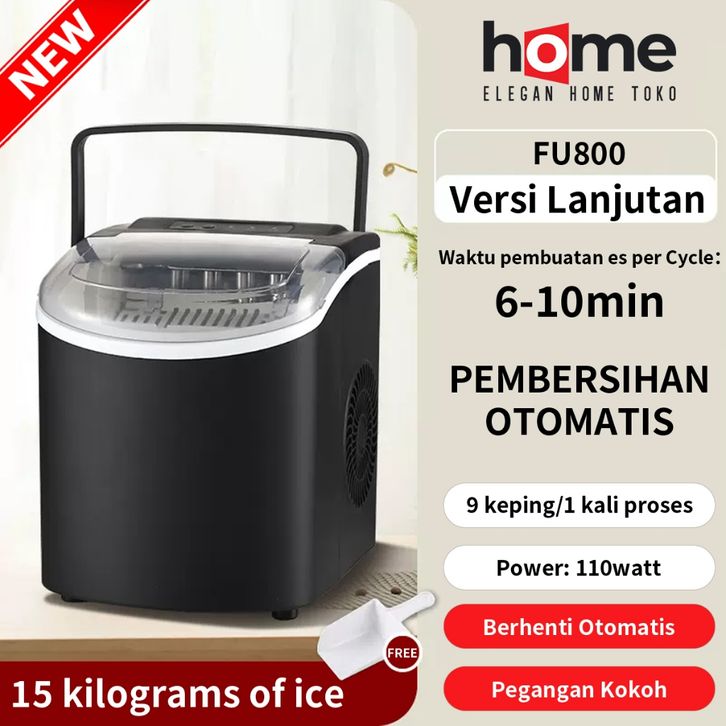 Mesin es batu 15 KG, Ice Maker, Menghasilkan 9 Pcs Es Bersih Sendiri