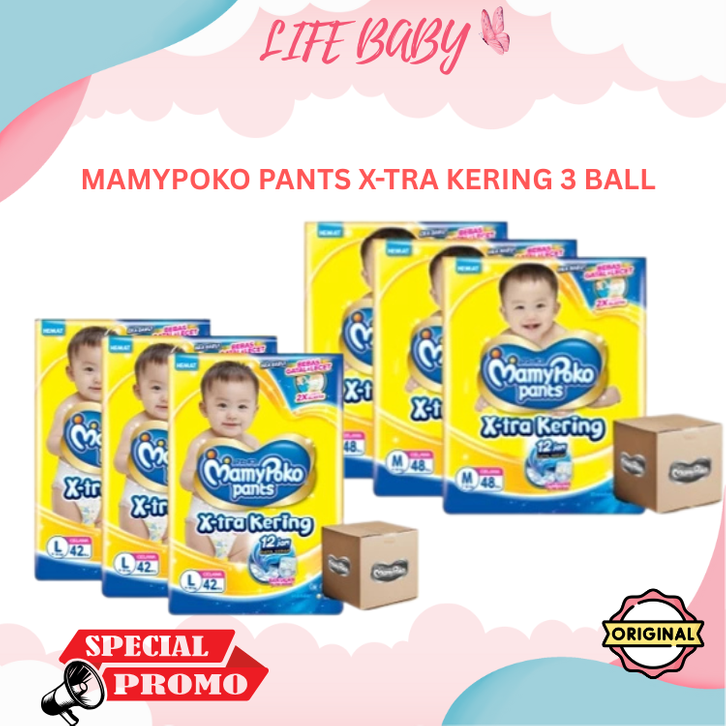 MAMYPOKO PANTS X-TRA KERING M 48 L 42 S 56 XL 38 XXL 34 POPOK CELANA ANAK BAYI UNISEX 3 BALL PAKET HEMAT MURAH TANPA DP
