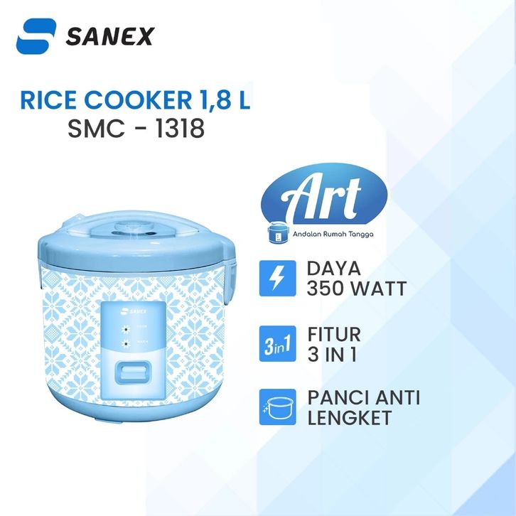 SANEX Rice Cooker Penanak Nasi Anti Lengket 3 in 1 ART Series 1,8 L