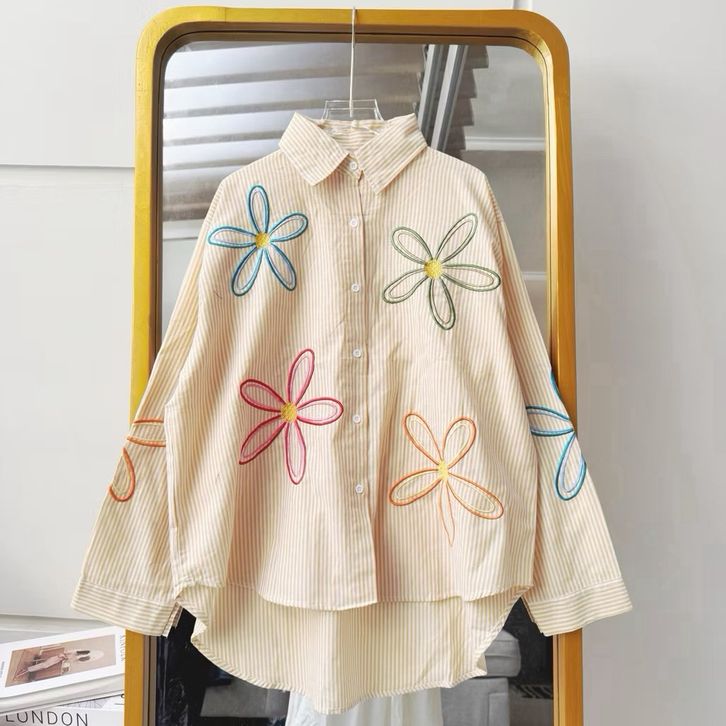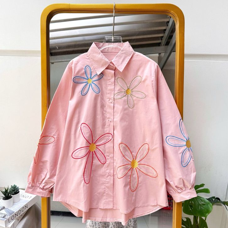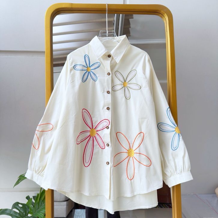 Kemeja Blouse Wanita Bordir Motif Bunga Oversize LD 120 Reshia Premium