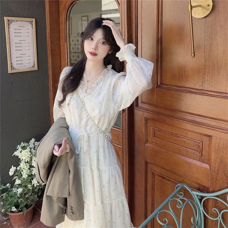 Baju Dress Wanita Lengan Panjang Putih Crinkle Midi Dress Korean Look Original By Fadfad