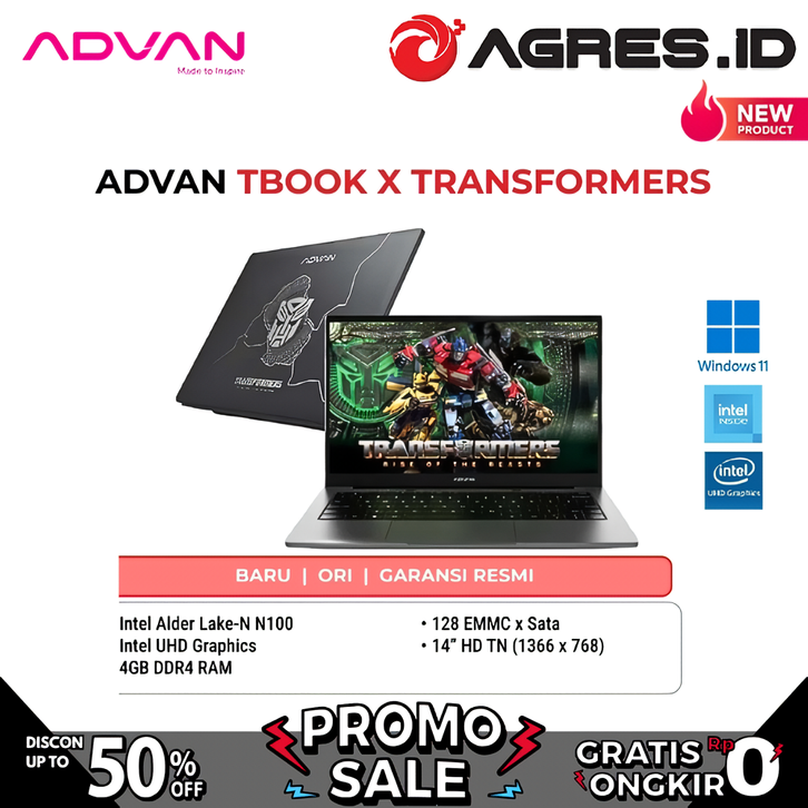 [Mall] Laptop Advan TBook X Transformers Intel Celeron N100 4GB 128GB SSD 14" HD Free Windows 11 Slim Gaming Notebook