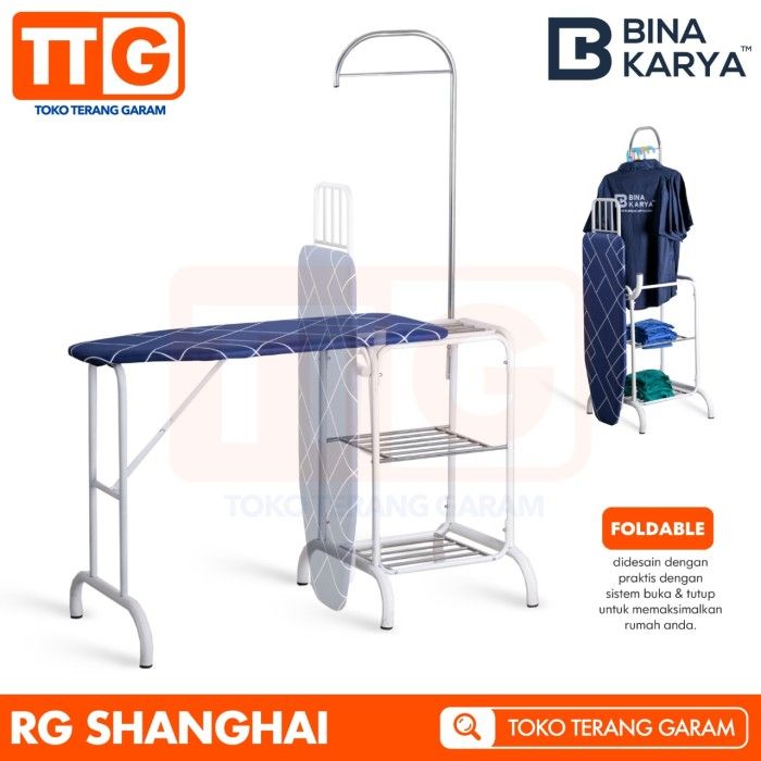 CICILAN BINA KARYA MEJA SETRIKA / RAK GOSOK ALUMINIUM MULTIFUNGSI - SHANGHAI - HITAM