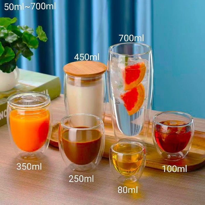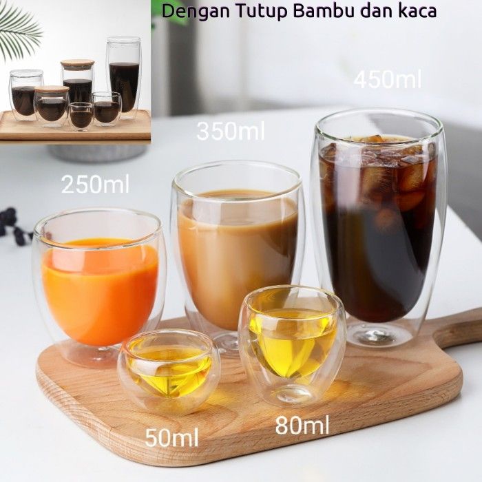 Double Wall Glass Coffee Dengan Tutup S3 - 100ml Non Tutup